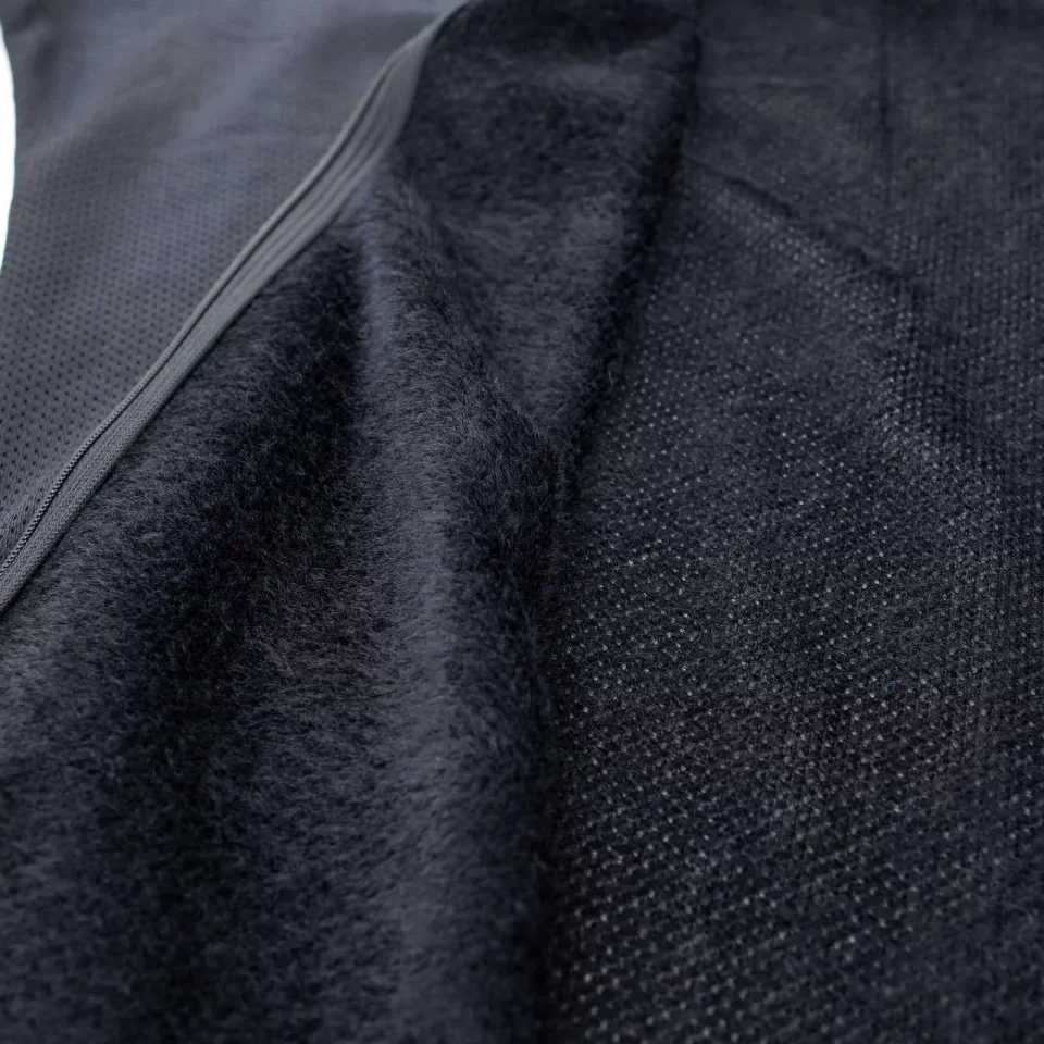 毛足が長く質量が少ないアルファダイレクト90を採用した、軽量で通気性と保温性を両立させた行動着です。