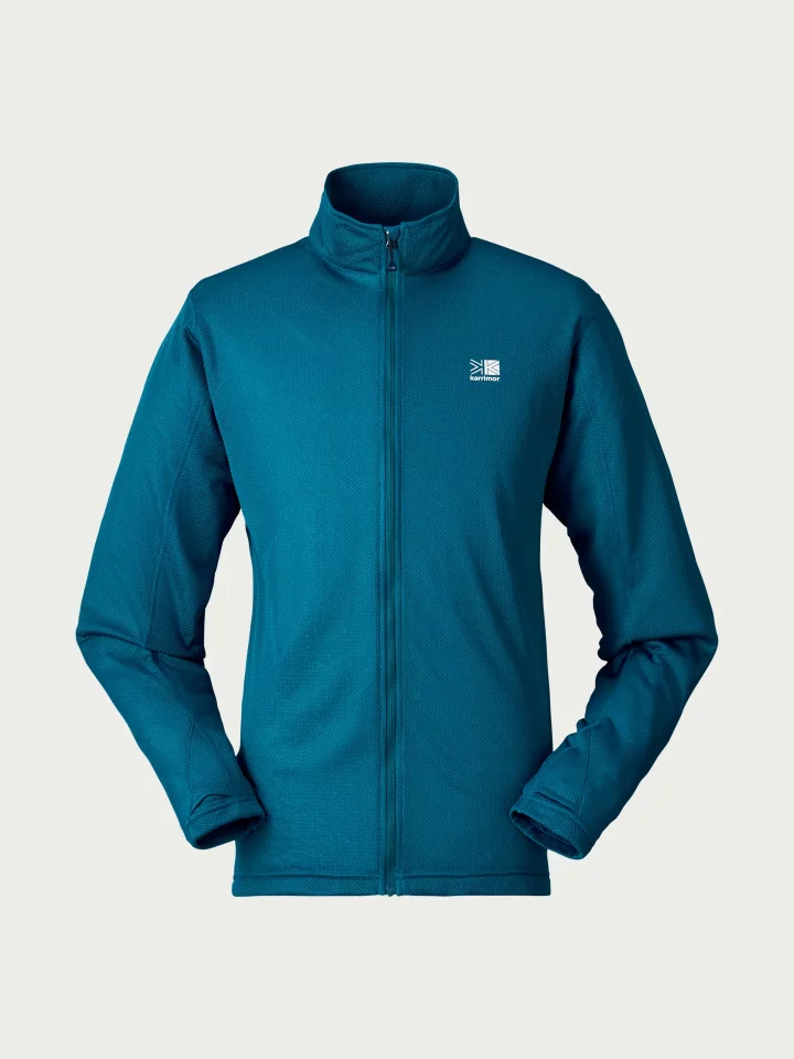 フルジップタイプで脱ぎ着しやすく、肌寒い時期のミドルレイヤー、アウターに最適です。袖口はサムホール仕様で、冷気の侵入を防いでくれます。