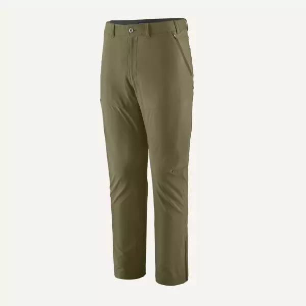 4方向ストレッチ素材と膝の立体裁断により、岩場や急登でも動きを妨げません。DWR(耐久性撥水)加工で小雨にも対応し、UPF50+で紫外線からもしっかり守ります。
