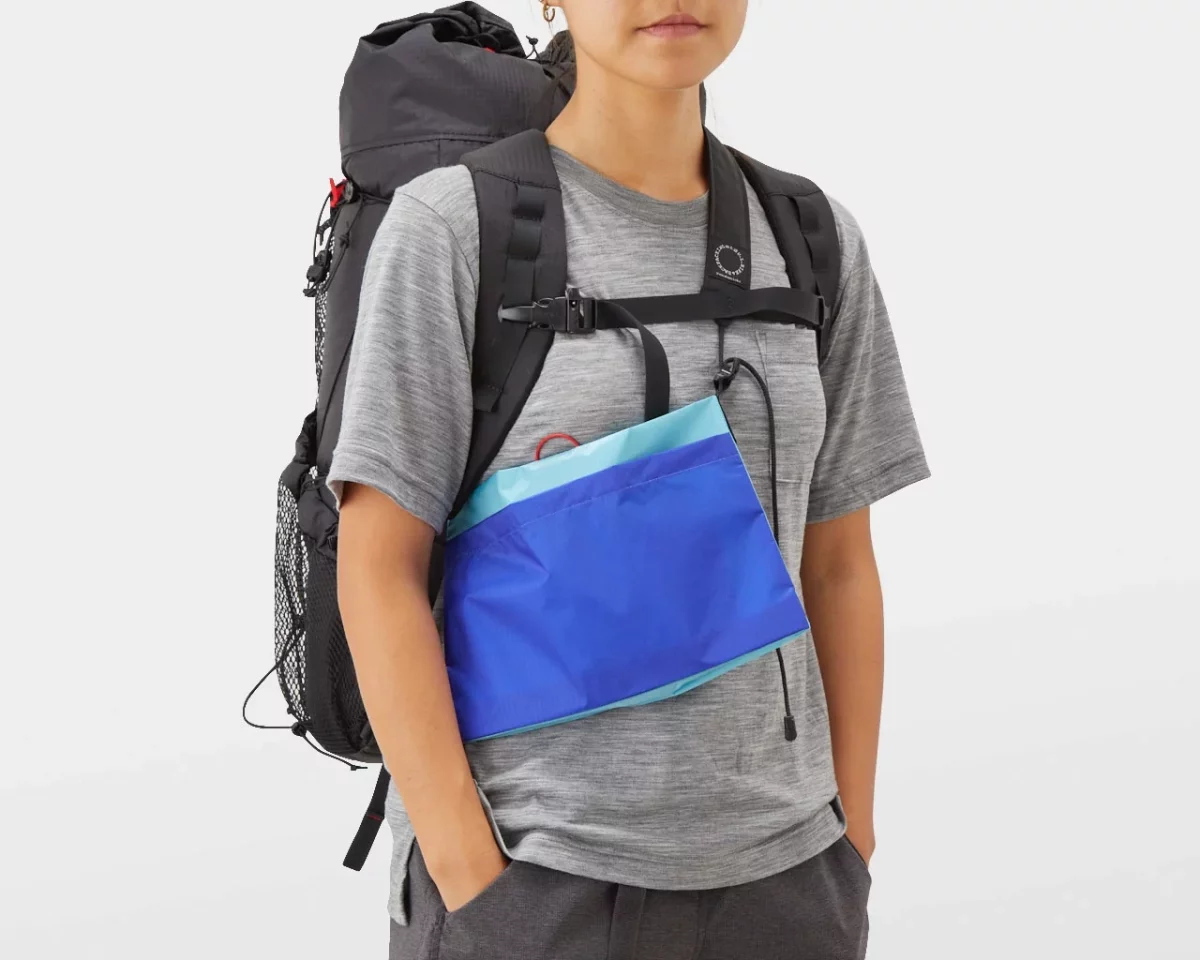 2003年の発売から「元祖チェストバッグ」として親しまれてきたサコッシュです。肩から斜め掛けするだけでなく、ザックのショルダーハーネスに付けることでチェストバッグとして使え、行動中に歩行の邪魔になりません。重量をザックに分散することで肩の負担も軽減できます。