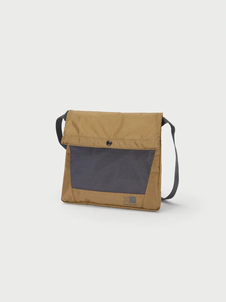 Xパックライトスキンを使用した、濡れに強く耐久性に優れ、軽量なサコッシュです。ボトム部分にスナップボタンが設けられ、ボトムの幅を変えることができます。また、テントに使用されるアジャスターを採用し、ストラップの長さを簡単に調節できます。