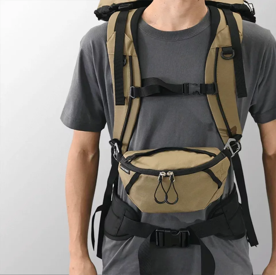 - 使用頻度の高い小物類を体の前面で出し入れできるため、いちいちザックを降ろさなくて済む
