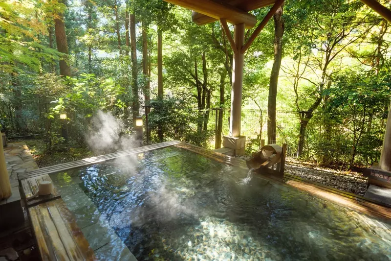・箱根登山鉄道強羅駅から徒歩5分の「箱根 ゆとわ」。肌が滑らかになると評判の美人の湯で、スパラウンジ、足湯、読書ができるライブラリーラウンジなど楽しさいっぱい。