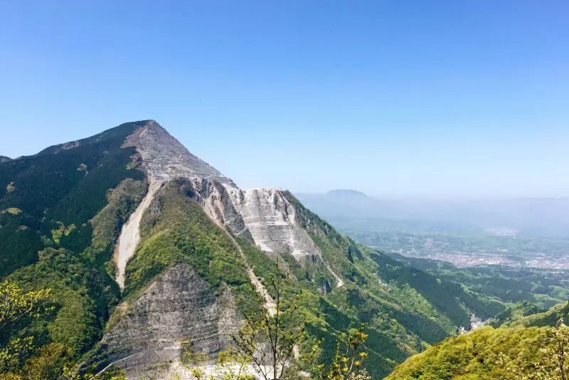 石灰岩の採掘により独特な姿となっていますが、古くから信仰の山として親しまれ、山頂には武甲山御嶽神社が祀られています。山頂からは秩父盆地を一望でき、天気の良い日は奥多摩や浅間山、さらには東京方面まで見渡せる絶景が広がります。