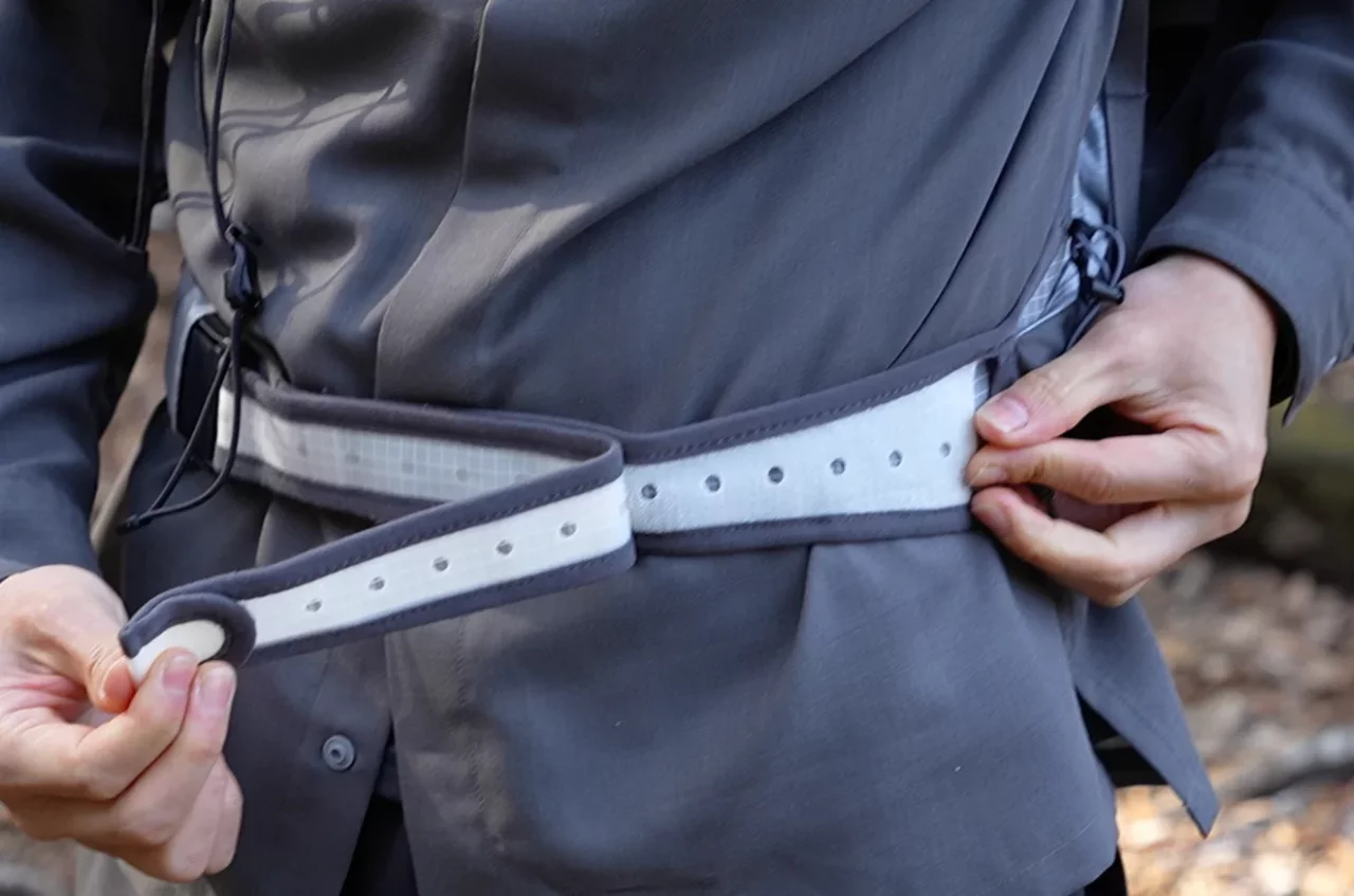 ウエストベルトは非常にユニークなデザインで、ベルトをするような感覚で体にフィットさせることができます。このデザインのメリットは使っていて2つあると思いました。