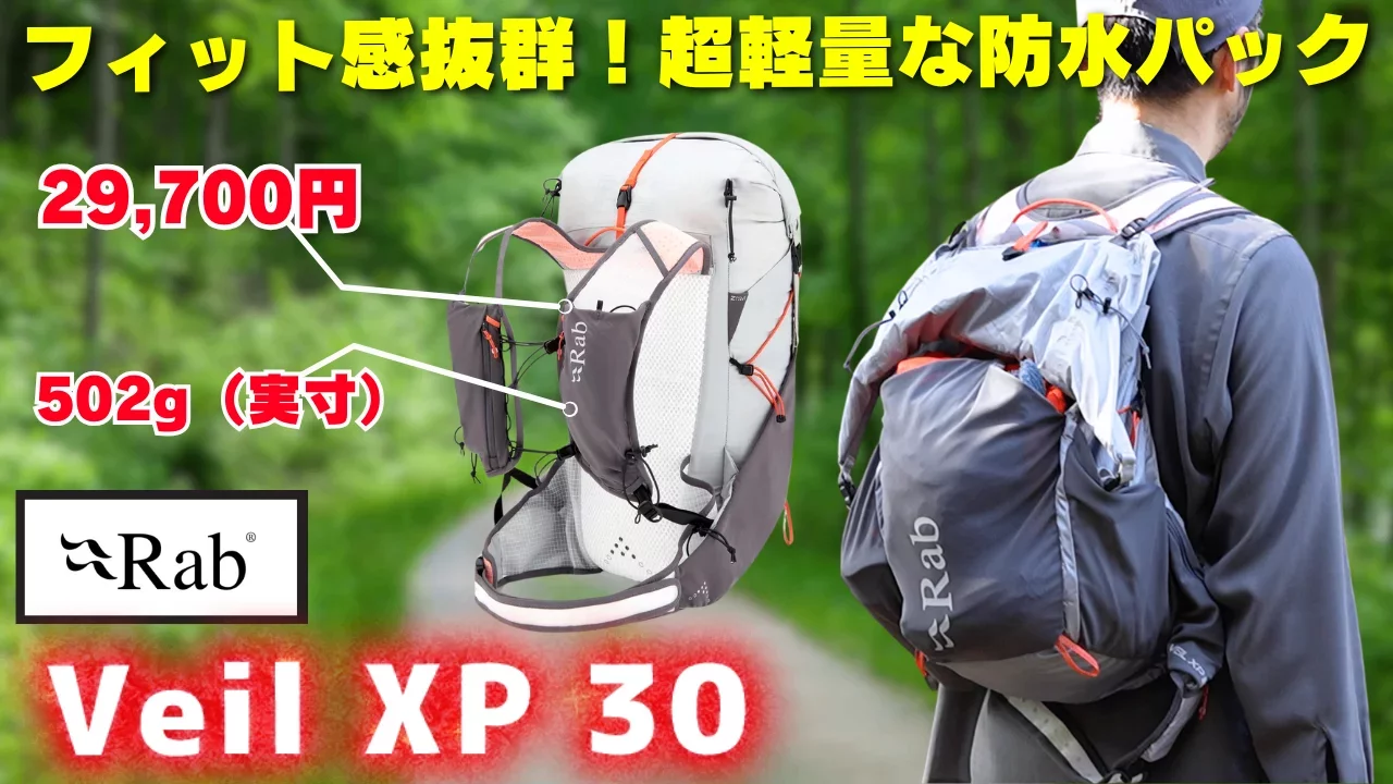 容量30Lでザック重量は実測で502g。さらにあらゆる方向からの水の飛沫に対して保護する防水等級「IPX4」の防水性を備え、体に吸い付くようなフィット感が特徴なのが今回紹介するRabのベイルXP30です。