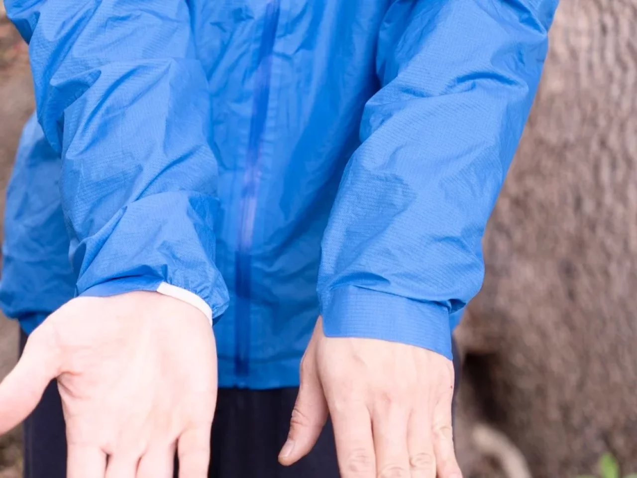 驚くべきはやはり重量。100g台前半のレインジャケットは、市場でもトップクラスの軽さを誇ります。