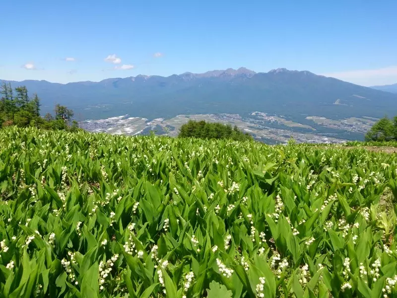 5月下旬から6月中旬まで、ゴンドラ山頂駅を降りてすぐの入笠すずらん山野草公園では、20万本のドイツスズランを、入笠湿原では約100万本の日本スズランの群生を楽しむことができます。