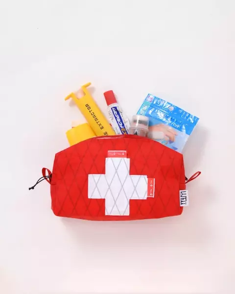 そんなシンプル志向の方にぴったりなのが、このファーストエイドポーチ。必要最低限の絆創膏や包帯をコンパクトにまとめたい人におすすめです。X-PAC素材を活かした軽量設計で、ザックのポケットにもスッと収まり、常に携帯しても負担になりません。