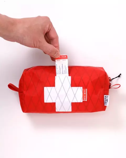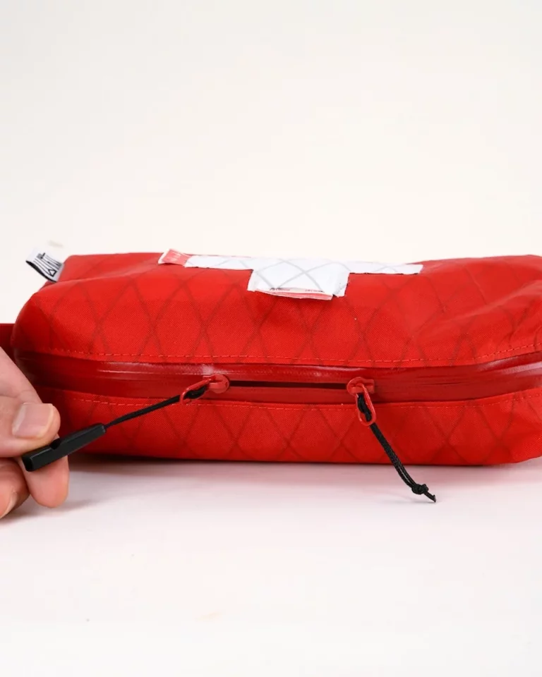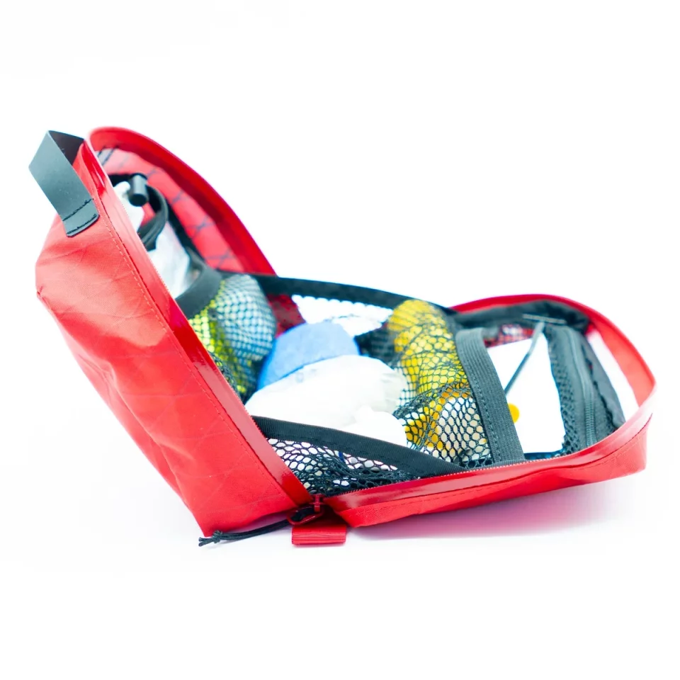 軽量で耐久性のある素材「X-PAC」を使用し、登山装備の中でも見失いにくいデザインと、素早く中身にアクセスできる機能性が魅力です。薬や絆創膏、ハサミやテープなど、必要なアイテムを整理しやすい内部構造も備えています。
