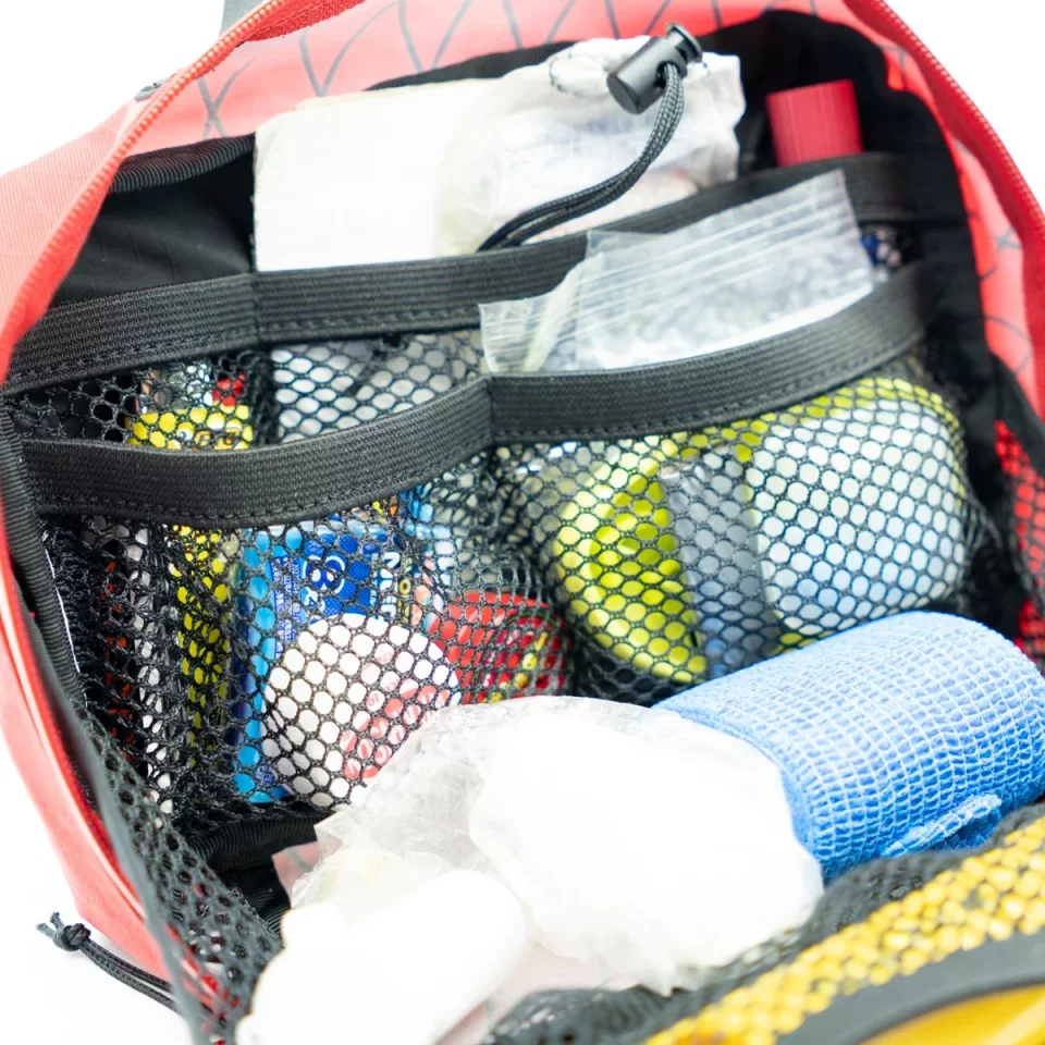 登山やハイキングでは、トラブルが起きたときに「すぐに必要なものを取り出せるか」が何より重要。このファーストエイドバッグは、持ち歩くアイテムの整理性能と、緊急時に素早く中身を見つけられる視認性の高さを重視してデザインされています。