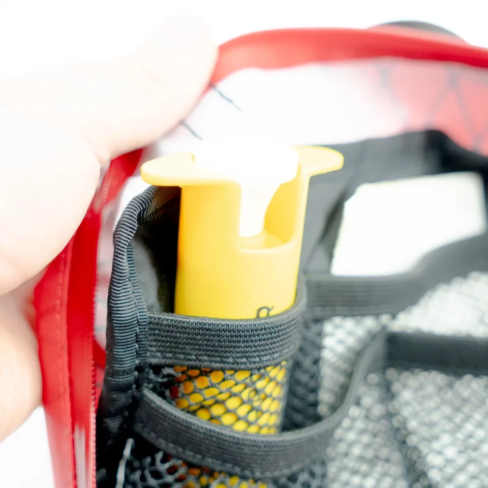 ファーストエイドバッグは"携行品の整理性能"と"緊急時の視認性"を重視する方におすすめです。中身をすぐに見つけて取り出せるポケット群と、中身の視認性に優れたメッシュ素材の組み合わせが特徴で、ファーストエイドキットだけでなく、化粧道具、日焼け止めや歯磨き粉や歯ブラシなどを収納するための旅行ポーチとしても使いやすいデザインです。