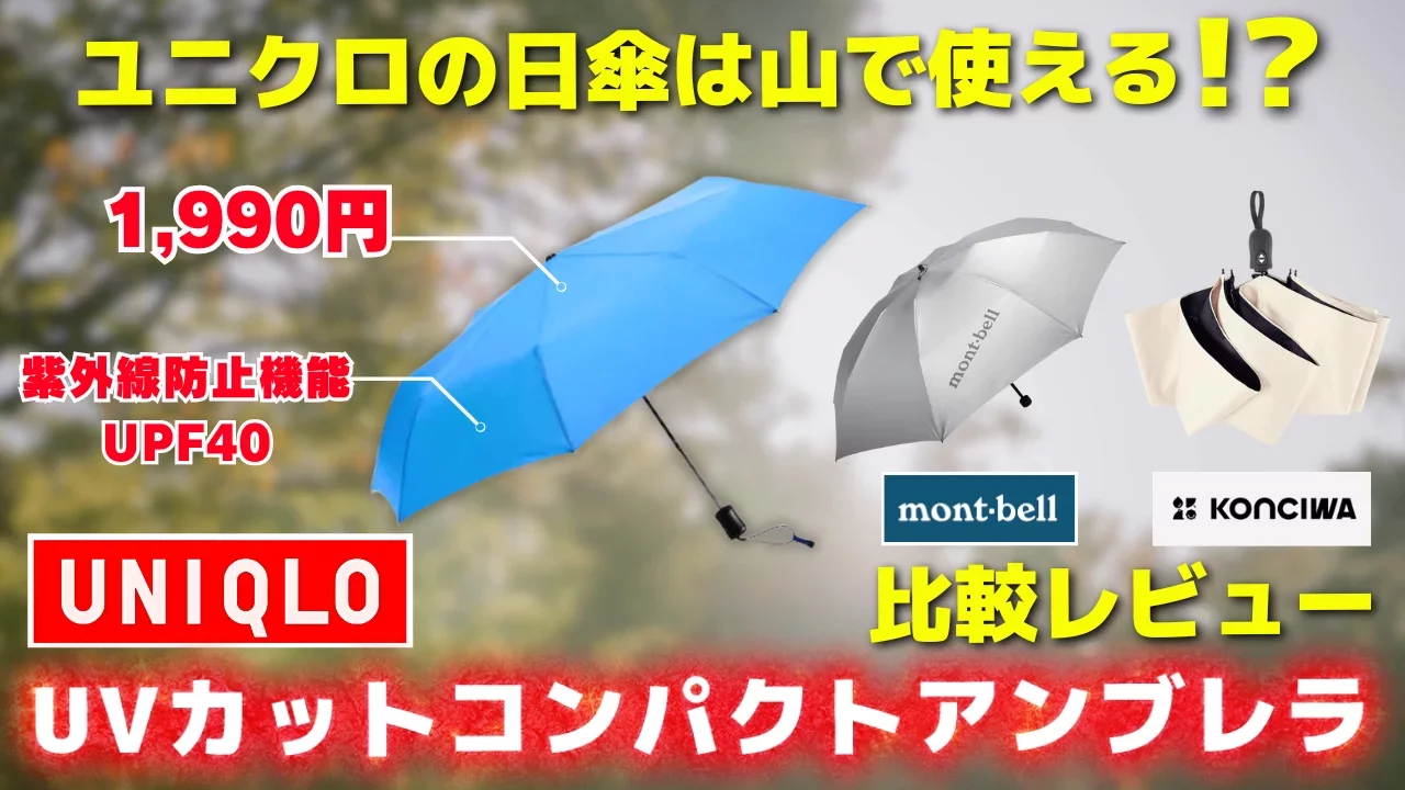 そんな紫外線対策のアイテムとして日傘を装備に加えるというアイデアがあります。日陰を持ち歩くことができるので、日差しを遮る場所がないところでは、非常に涼しく停滞することができます。今回紹介するのはわずか1990円で購入することができるユニクロの日傘「UVカットコンパクトアンブレラ」を紹介します。