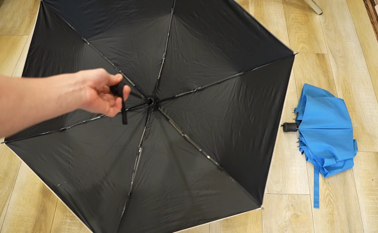 僕が日常から山でも愛用しているコンチワの日傘は、もっとコンパクトでさらに片手で開閉を行うことができます。またユニクロの日傘と同様に骨組みをサポートするステンレスの部材も備わっているので風に強く、実際に使っているとユニクロよりしっかりとしているように思います。