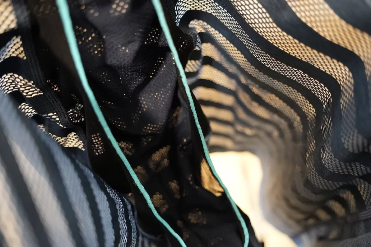 そしてウエスト部分は内側に凹凸を設け、外側はハニカム構造のメッシュ素材で、お腹部分を冷やしづらく、汗で濡れても素早く外側に移動させ拡散し、アンダーウェアのウエスト部分のゴムが濡れてもズボンが濡れづらいようにデザインされています。