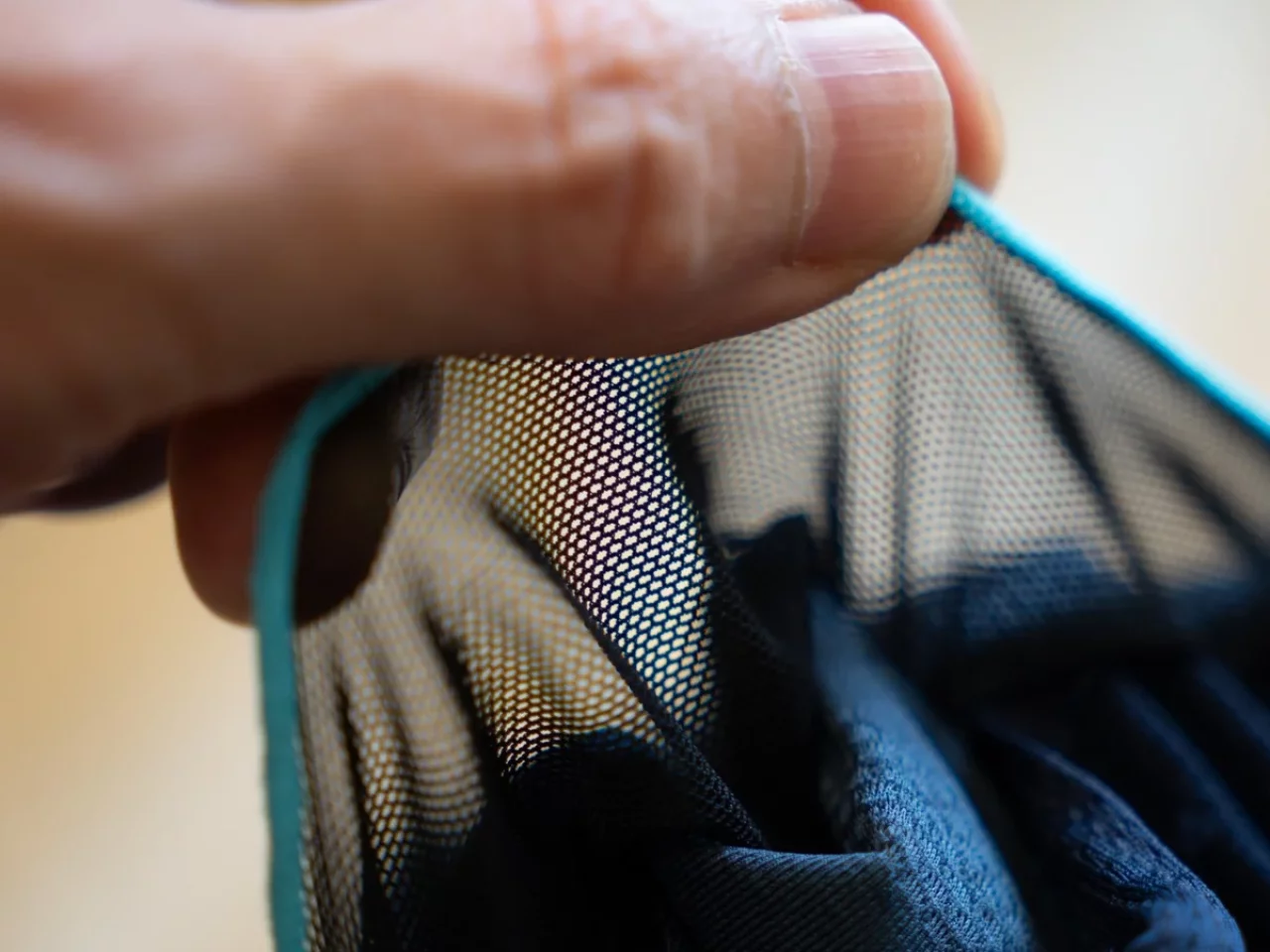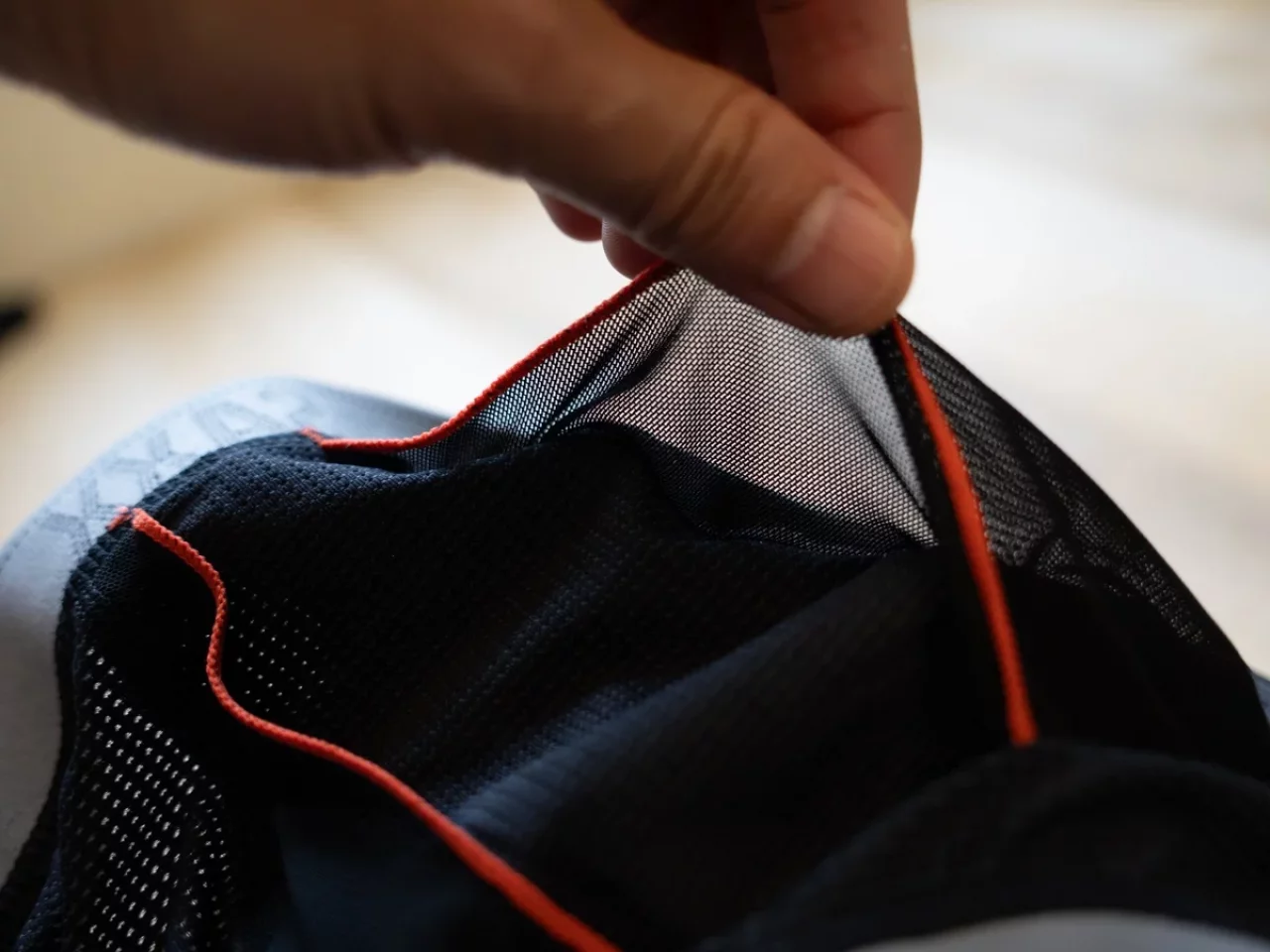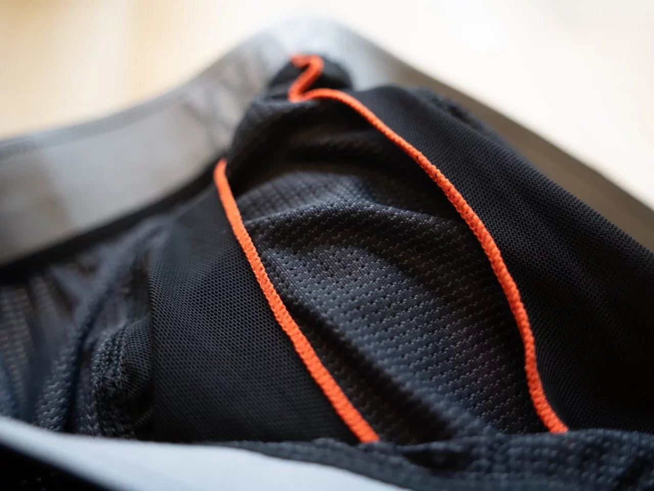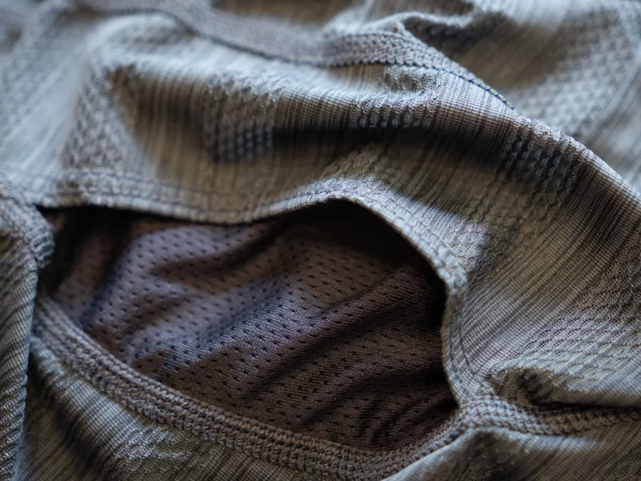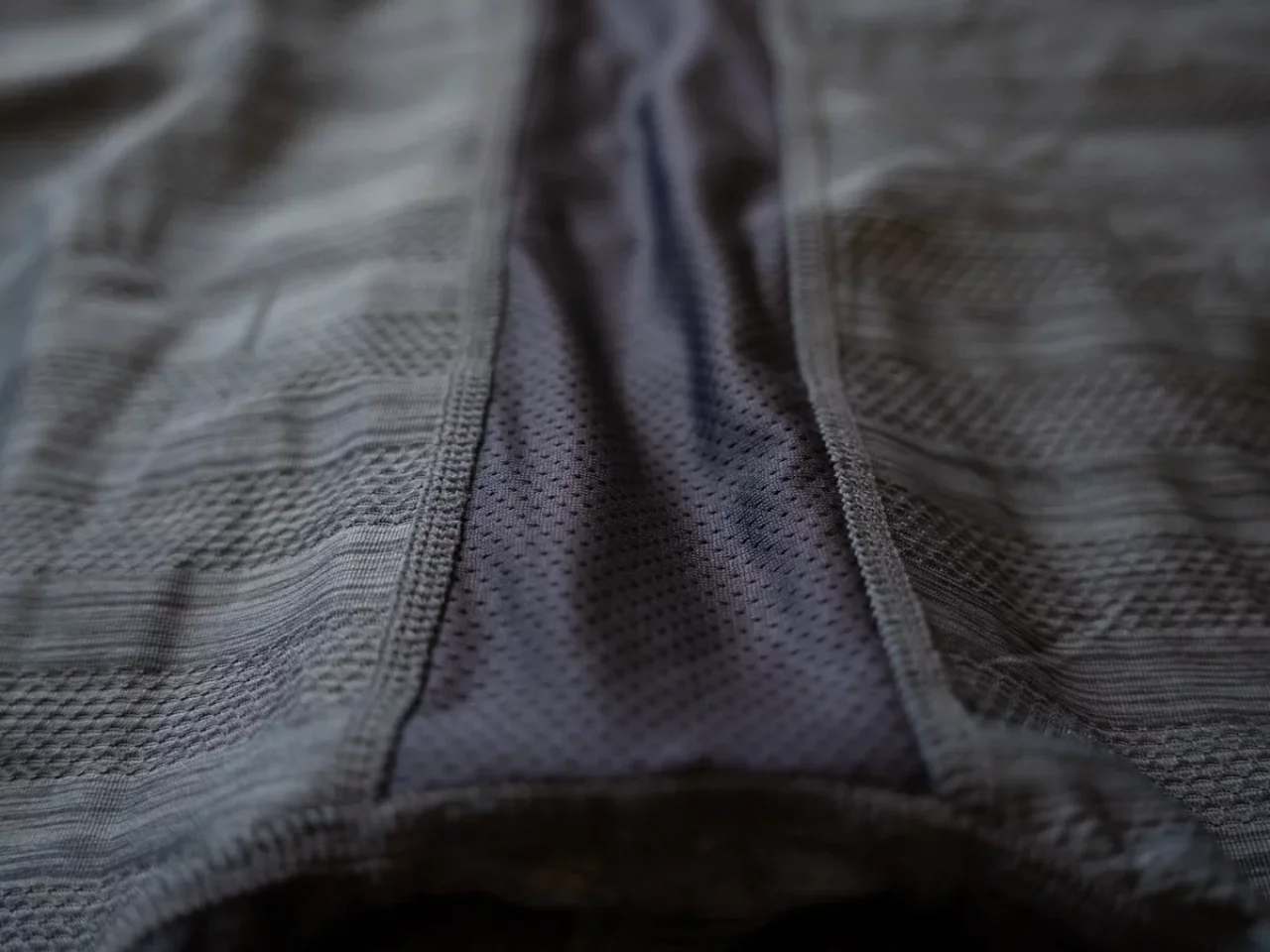 「QUEST QUICK DRY MESH」は、非常に速乾性が高いマイクロメッシュをメイン素材としており、構造もシンプルです。「DROP TEMP COOLING MESH」と比較すると汗の乾きの速さや心地よさに大きな差を感じることはないのですが、フィット感には差があり「DROP TEMP COOLING MESH」の方が、包み込むような心地よさを感じます。