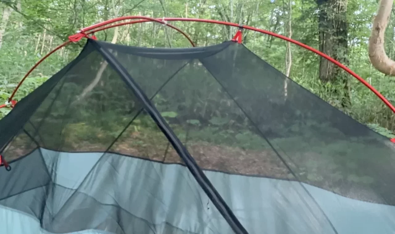 雪山では広いメッシュのため冷気の侵入が懸念されますが、無雪期であればフライシートの切り込みも少ないので冷気の侵入も少なく、快適に使用できます。