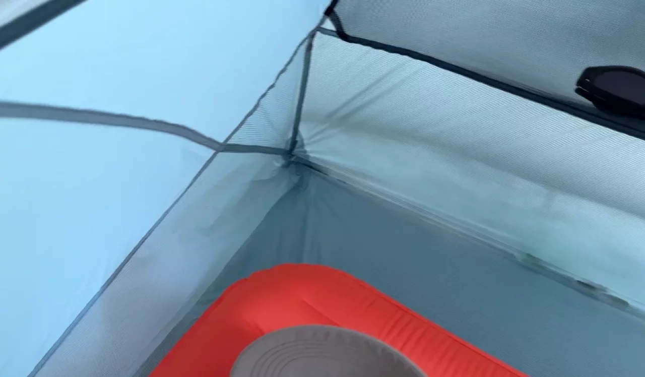 インナーテントは就寝時に風が体に当たらないように、インナーテントの約半分は20Dリップストップナイロンが使用され、上部は20Dポリエステルマイクロメッシュが使用されています。これによって通気性が向上されているので結露がしにくく、暑い季節の高所登山でも快適に使用できます。
