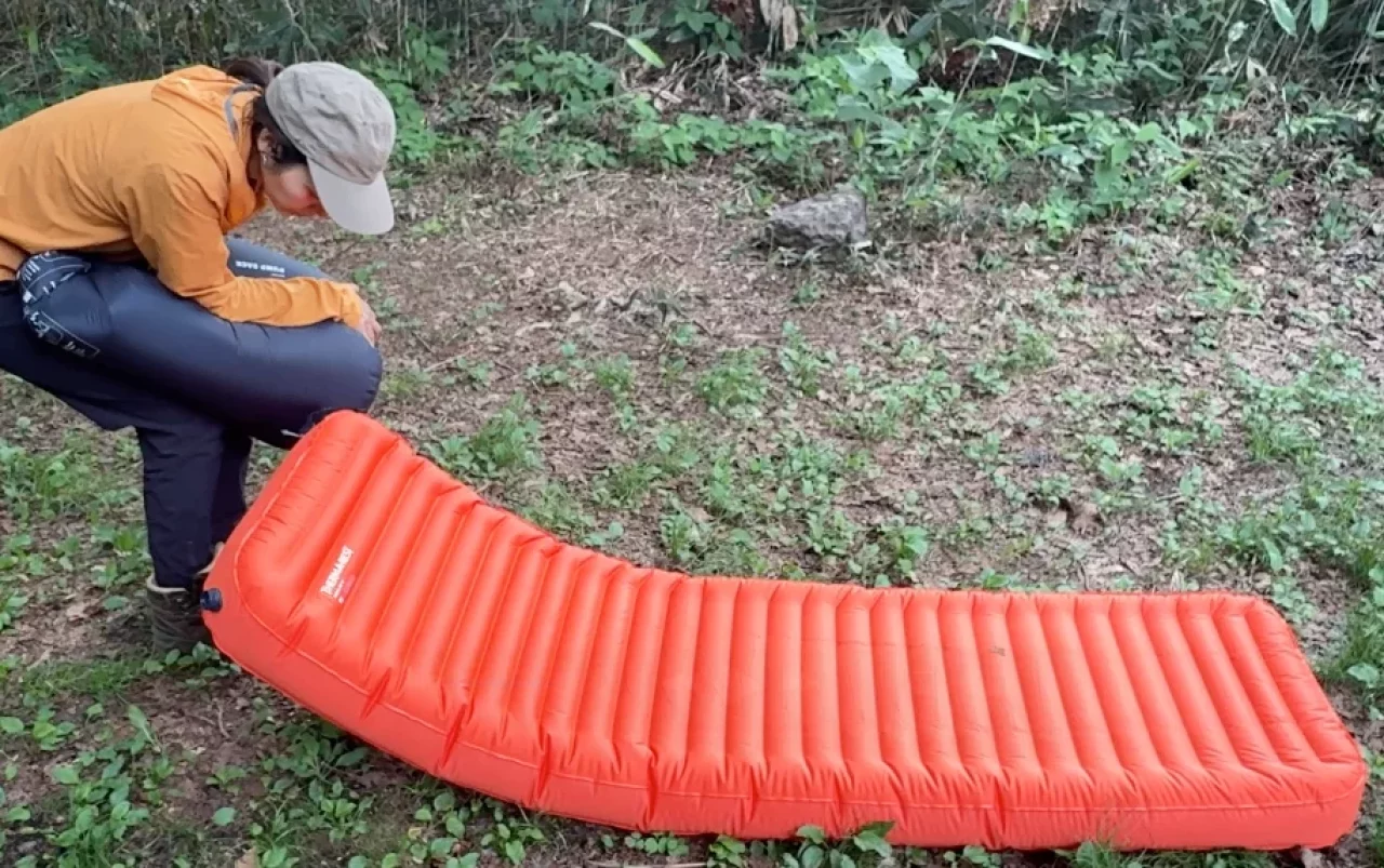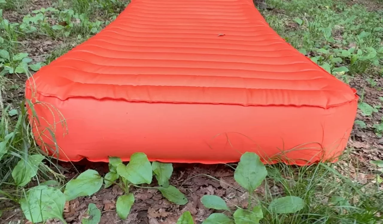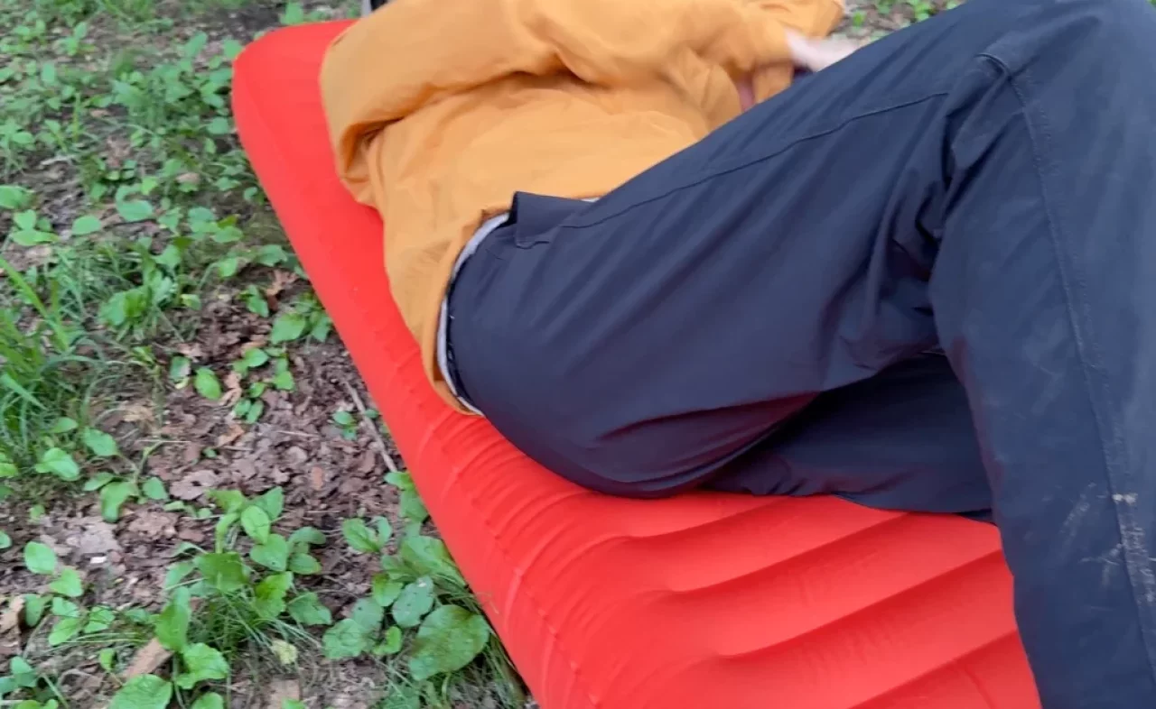 寝心地の良さを追求しただけでなく、サーマレストの特許技術である三角形のバッフルによる2層構造のエアパッドが内蔵されています。これによってエアマット内に空気を溜め込み全身をしっかり支えてくれます。実際に寝てみるとウォーターベッドのような硬すぎず柔らかすぎない快適な寝心地で、さらにR値4.7なので3シーズンで地面の冷えを気にすることなく就寝することができます。