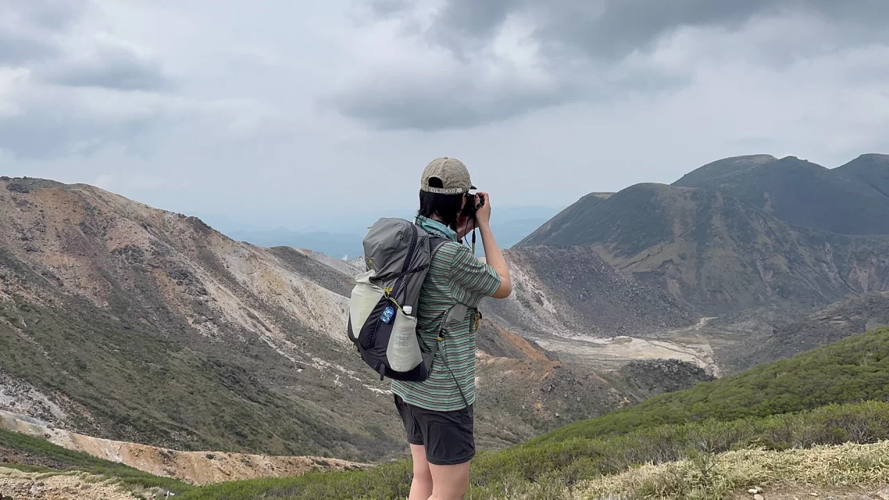 息が上がって体が運動に慣れていくことがいいのか、街の匂いから離れていくことがいいのか、それを上書きするほどの景色がいいのか、どの要素が重要なことなのかわからないけど、とにかくこうして歩いていって最終的には景色に「わぁーー!」って真に感動する気持ちが生まれる。岩の上に立ってこれから歩く久住山頂への道を見下ろした時、体の正面から強く吹く風を受けて、私の頭の中を覆っていた活字たちが本州へと飛ばされていった。ミヤマキリシマがほとんど咲いていないことは、はっきり言ってどうでもいいのだ。東京から遠く離れて、ここの地に来てジュンと一緒に同じ景色を見ていることだけ、それだけが大事ことなの。
