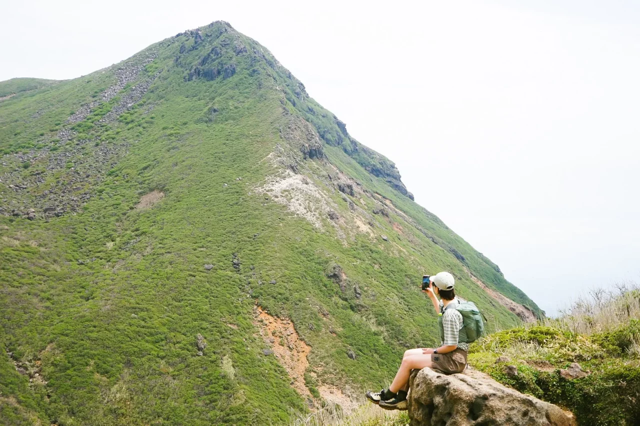 はじめのコースがめちゃくちゃ急登で一気に600くらい上がるのだけど、辛いと思いながらもガスが濃くて思考が閉じるので案外楽に登れた。後ろを振り返ると真っ白で、本来見えているはずの火山の雄大さは、見えても足元から数百メートル。雄大というか壁が白い。たまに切れたガスの隙間から街が見えるが、街から5分のところを登っているのでまあ近いである。