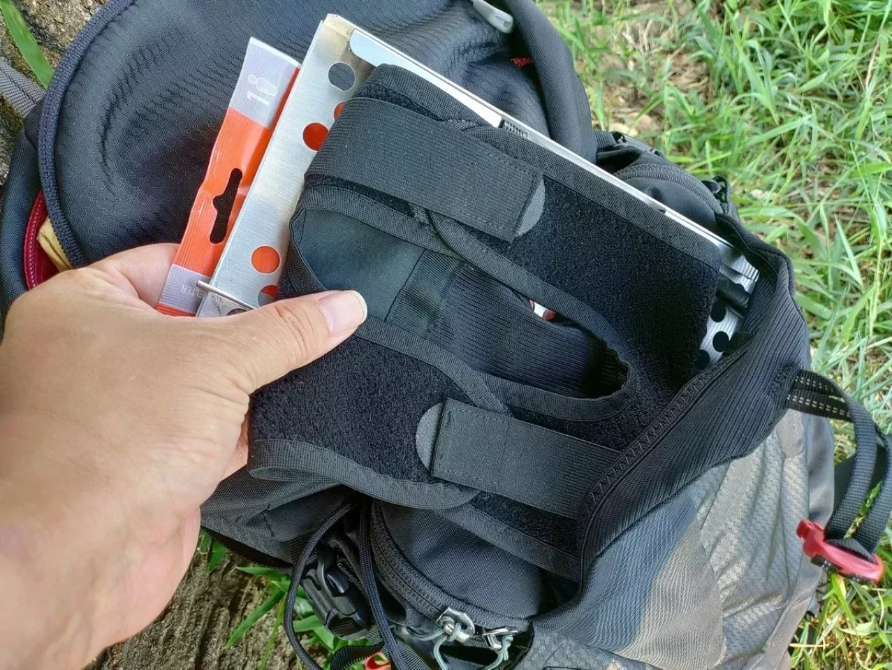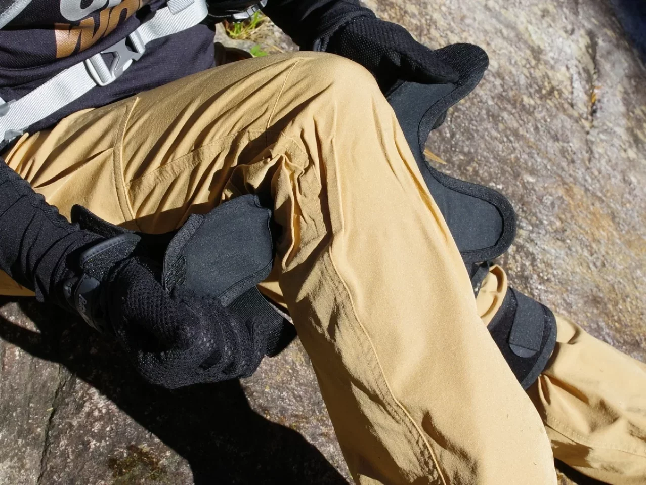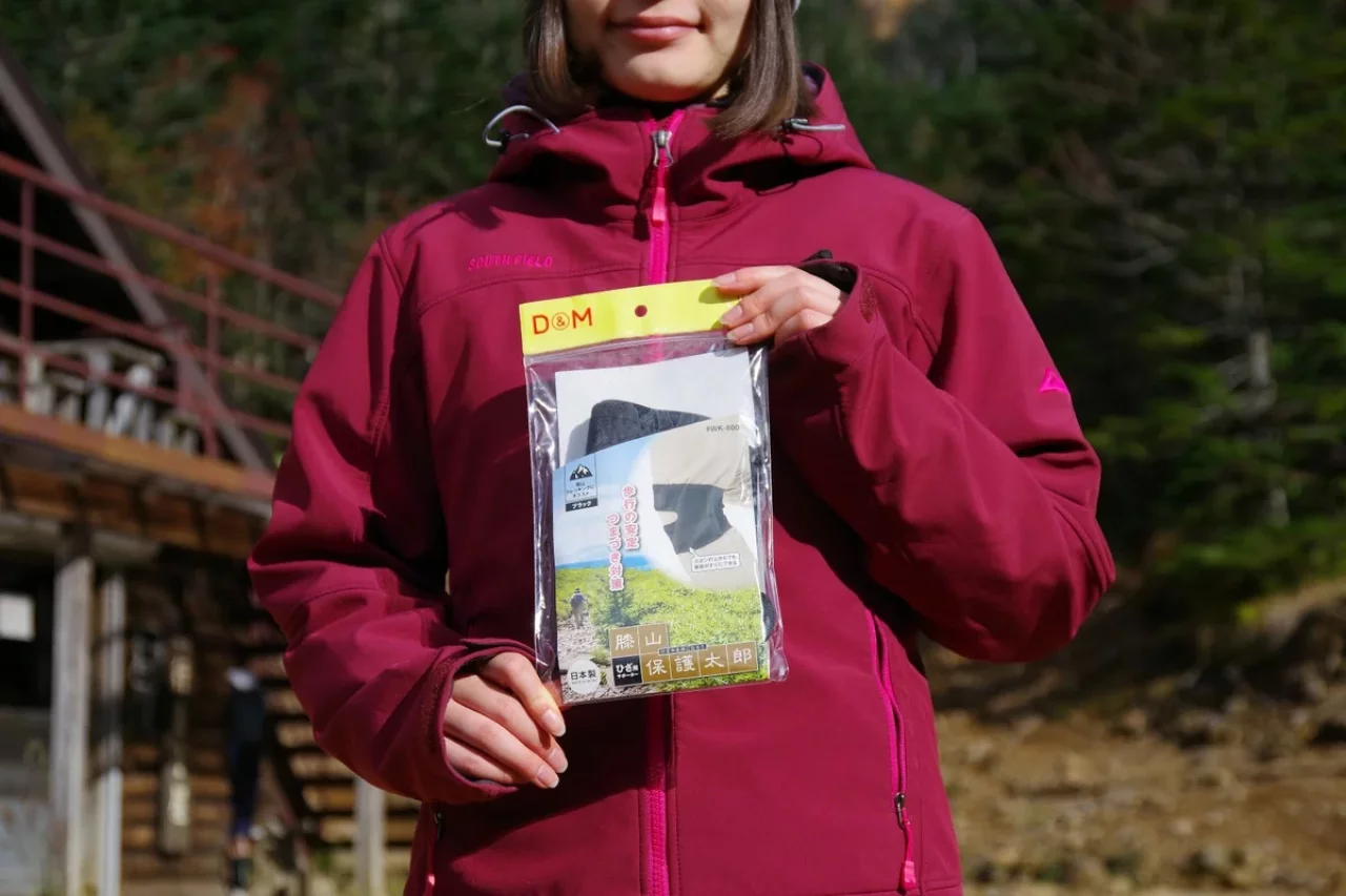 「膝山保護太郎」の着脱のしやすさも大きなポイント。靴を履いたままでもパンツの上から簡単に装着できる構造は、登山中に膝に違和感を覚えたときや、休憩中にサポーターを着け直したいときに圧倒的な利便性を発揮します。