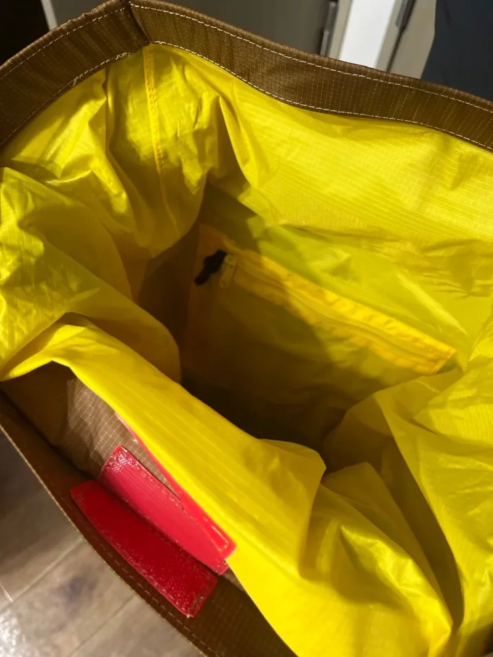 本体には100デニール・バリスティックナイロン・リップストップ、底部には210デニール・バリスティックナイロン・リップストップを使用。紡糸の段階でナイロン糸に延伸加工を施し強度を持たせたバリスティックナイロンは、従来のナイロンと比べて同重量で約2倍の引き裂き強度を実現している。