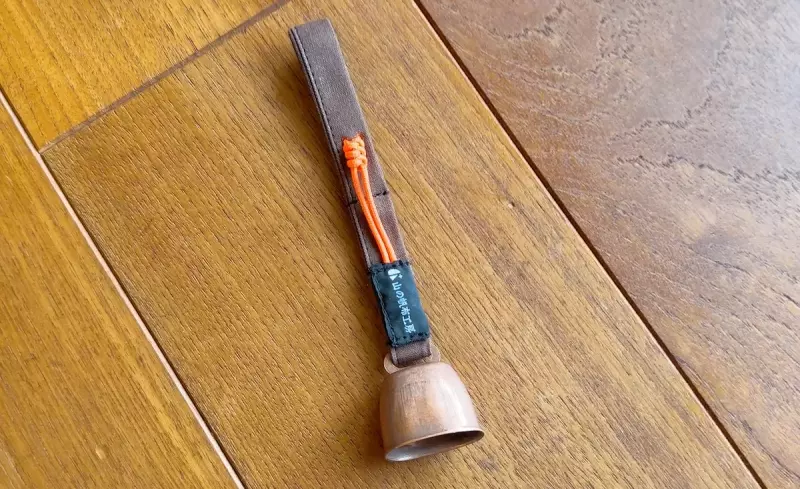 最近手に入れた山の帆布工房の「帆布と熊鈴」は、「あの角を曲がって急に出てきたらどうしよう?」と勘を働かせて、意図して熊鈴を鳴らせるように、親指に通して使えるようにデザインされています。
