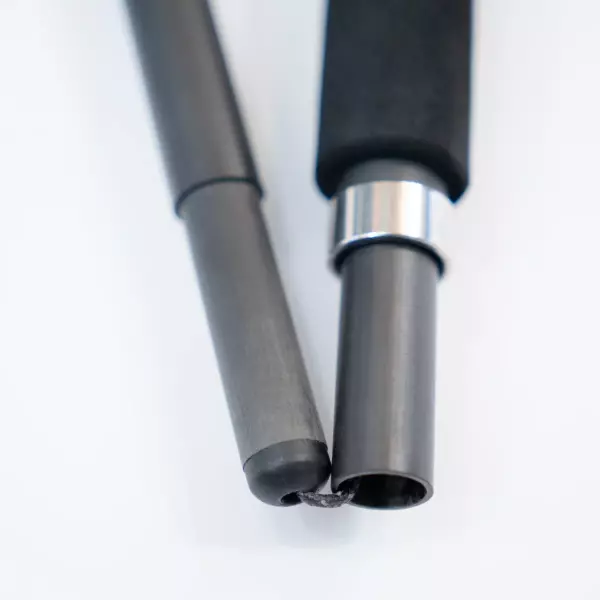 トレッキングポールは軽量であるだけでなく、仕舞寸法が短いので片付けがとても楽になります。そんな思いで取り入れたのがULカーボン・トレッキングポールです。
