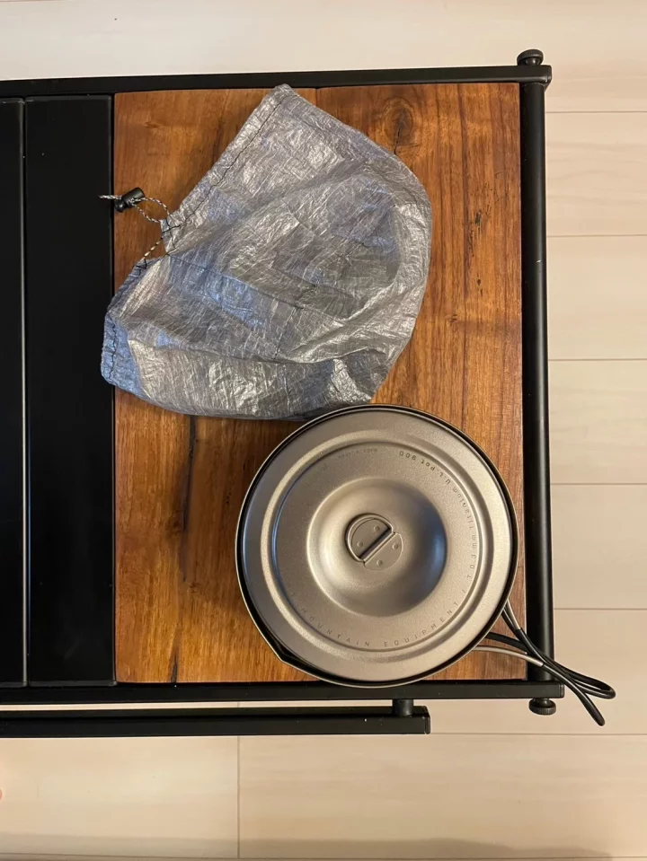 焚き火台を使用した調理やお米を炊くのにはこれを使っている。ソロの島旅にちょうど良いサイズ。ベイルハンドルを外して上記のTi U.L. Pot 900にスタッキングしている。