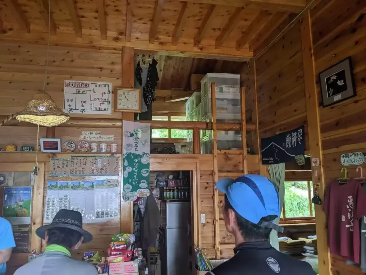 ②軽食メニューやスイーツなどを提供している山小屋でいただく