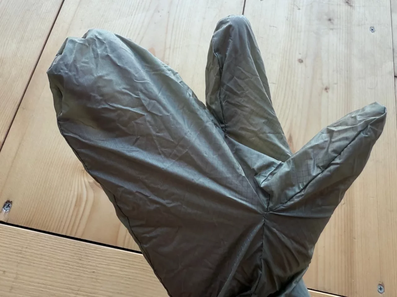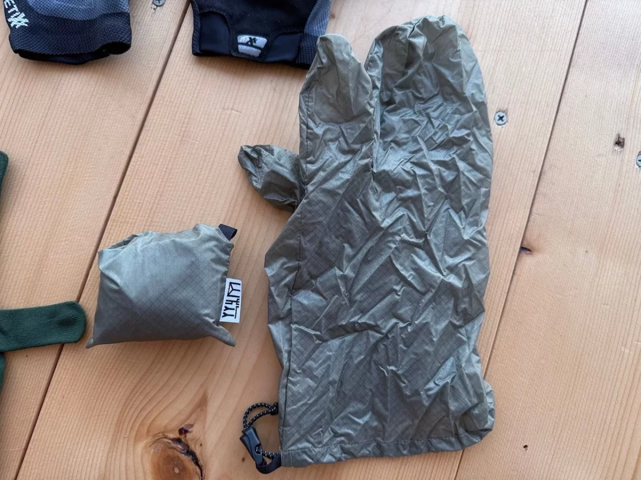 今紹介したキネティックスのラヨシュは、非常に通気性に優れており、稜線で冷たい風に叩かれると手が冷えるリスクがあります。だから念のために防寒対策が必要で、その場合使用しているのが、山旅のCODURA製軽量コンパクト防風ミトンです。