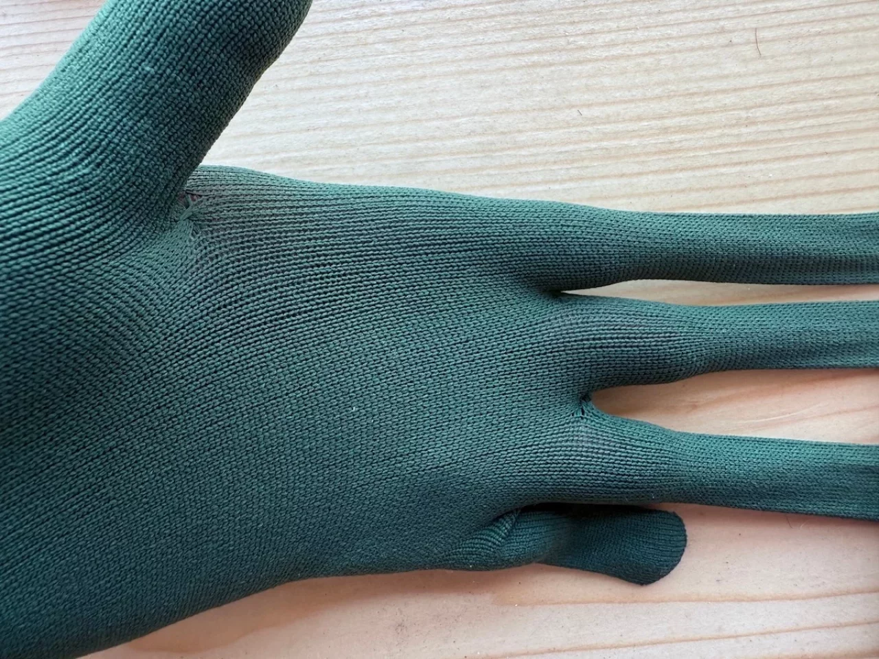 このグローブはフリーサイズで、特殊な二重構造によって手にぴったりフィットするように作られています。また指先はシームレスで指先がゴロゴロしづらいのも特徴です。