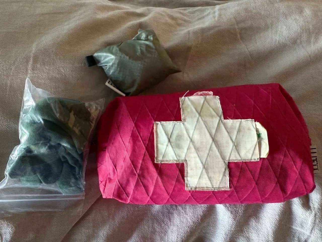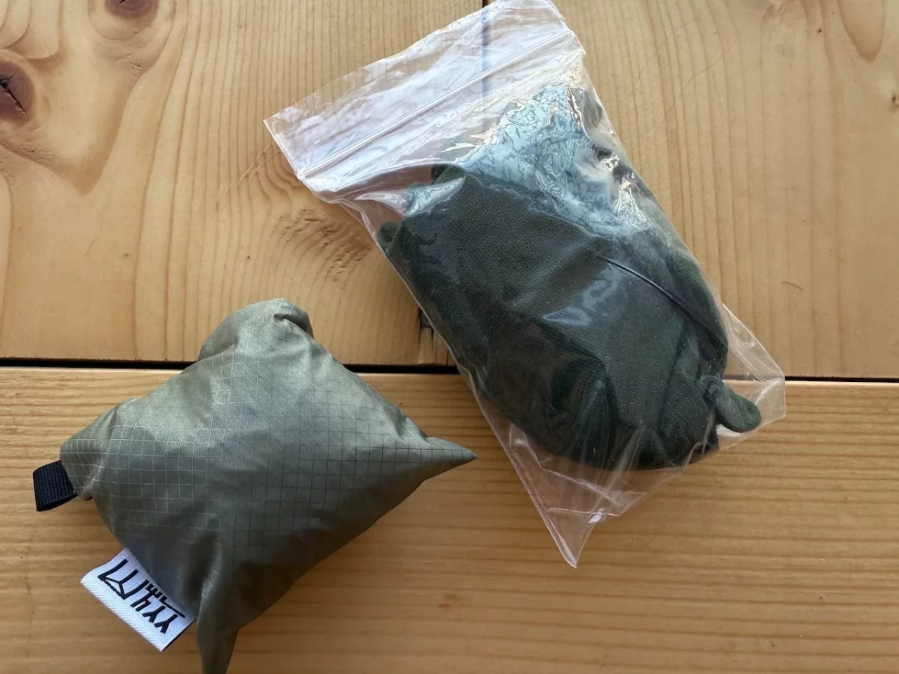 もしも寒さが厳しければインナーグローブとして活用する以外に、グローブが濡れてしまった時の予備グローブとしても考えていて、山旅のCODURA製軽量コンパクト防風ミトンと同様、ファーストエイドキットポーチの中に収納しています。この時このグローブが濡れないように、厚手のチャック袋に入れています。