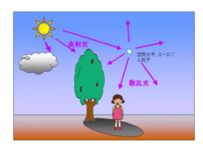 つまり、空気分子やエアロゾル粒子にあたって屈折した散乱光によって、晴天の日に木陰などにいても空が見えているところであれば、目で感じる以上に紫外線を浴びていることになるので注意が必要、とのことなのです。