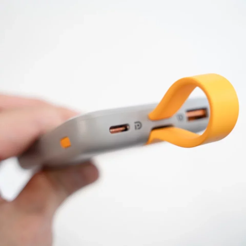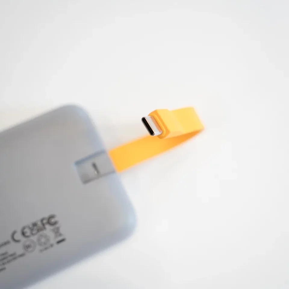 デザインにも特徴があり、USB-Cケーブルが内蔵されており、ケーブルを忘れても安心です。ケーブルが内蔵されていますが入出力可能なUSB-Cポート、出力のみのUSB-Aポートが備わっているので3台同時充電も可能です。