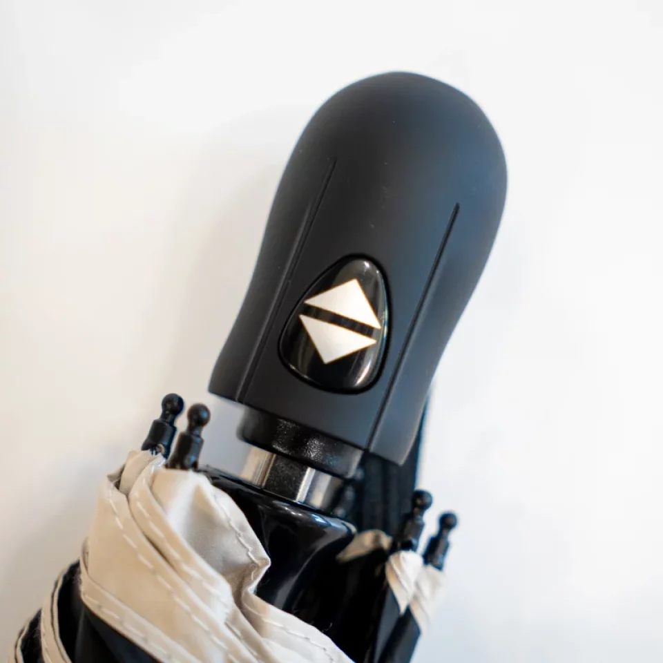 この日傘が便利なのは、グリップ部分に取り付けられたボタンを押すことで自動開閉することです。この仕組みを一度味わうと両手を使わなくて済むのがほんと楽で、片手が塞がっていても素早く日傘をさすことが可能です。