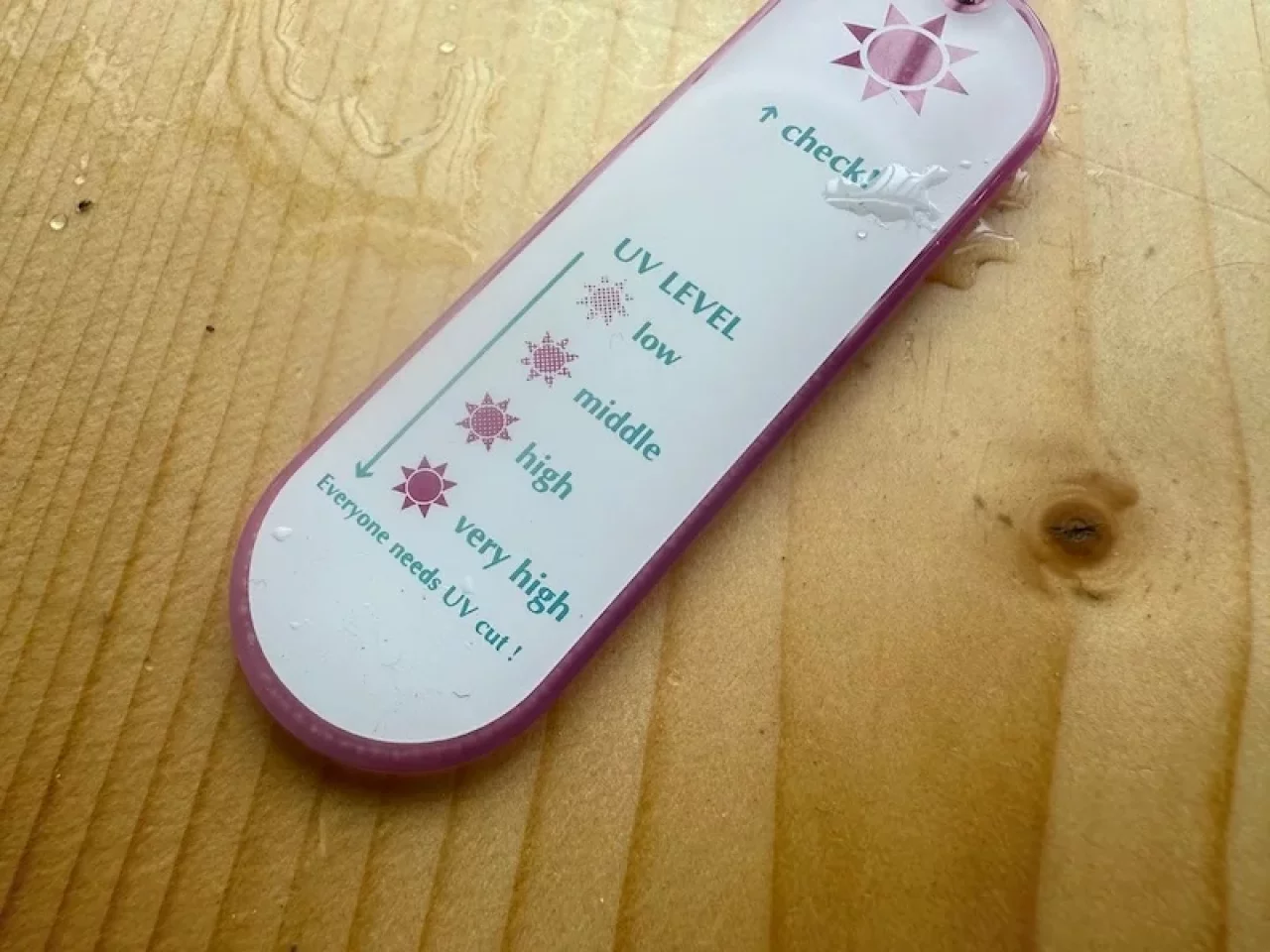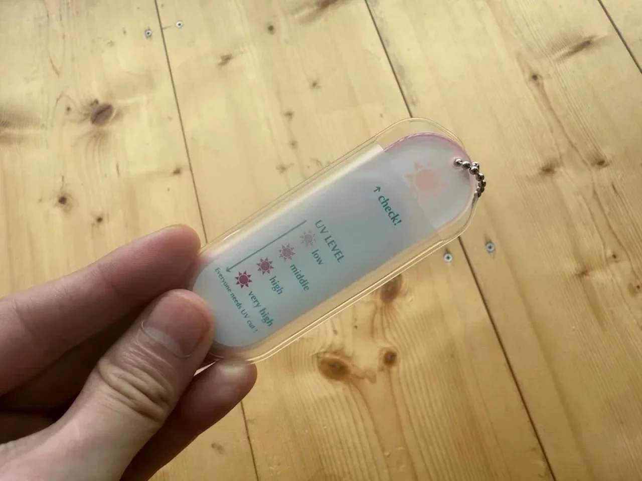 製品名からも分かるように、紫外線を感知すると本体の色が変化するUVレベルチェッカーと、裏側には鏡がついた商品です。