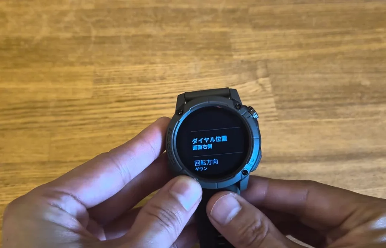 1つ目がデジタルダイヤルの位置変更です。右下のメニューボタンをクリックして設定画面に移動します。その中のメニューにあるシステムをクリックすると「デジタルダイヤル」というメニューが表示されます。このメニューの中にあるダイヤル位置を画面右側から画面左側に変更します。こうすることで手首を曲げた時に、意図せず時計のボタンを押して勝手に動作してしまうことを防ぐことができます。