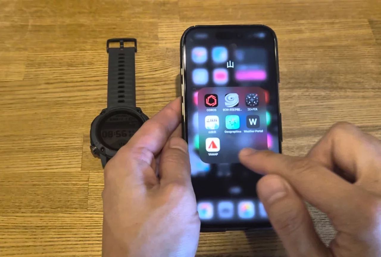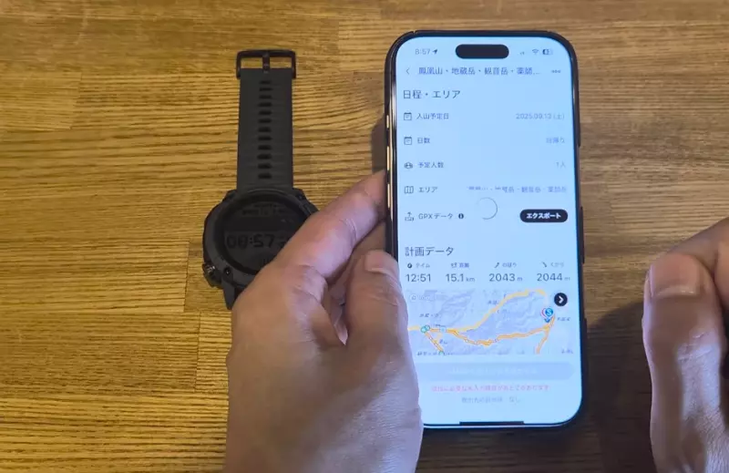 ルートファイルの読み込み方はとても簡単で、YAMAPを例にとると、スマホで登山計画を作成したら、作成した登山計画ページにあるGPXデータの「エクスポート」というボタンを押し、それをCOROSのアプリに送ります。