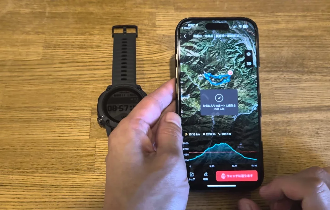 COROSの時計はYAMAPなどで作ったルートファイル(GPXファイル)を読み込んで、実際に登山をする時にルート案内をしてくれます。