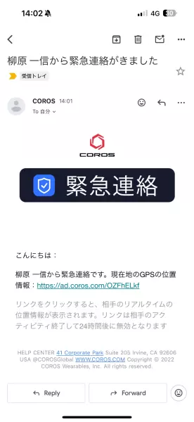 次に緊急連絡先の登録です。スマートフォンアプリのプロフィールから緊急連絡というメニューをクリックし緊急連絡をオンにします。そして緊急連絡先を追加した上で、ダイヤル・バックボタンを7秒間長押しすると登録したアドレスにメールで通知が発信されます。