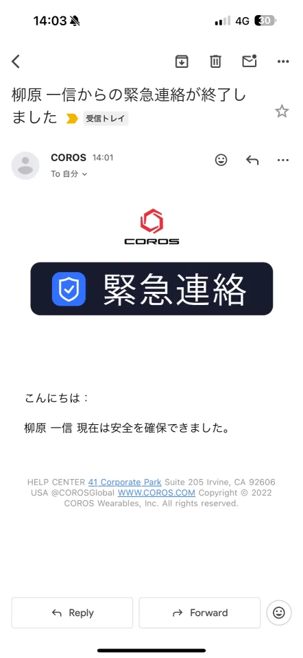緊急連絡先に通知を送信するには、スマートフォンが通信できる状態でないといけません。