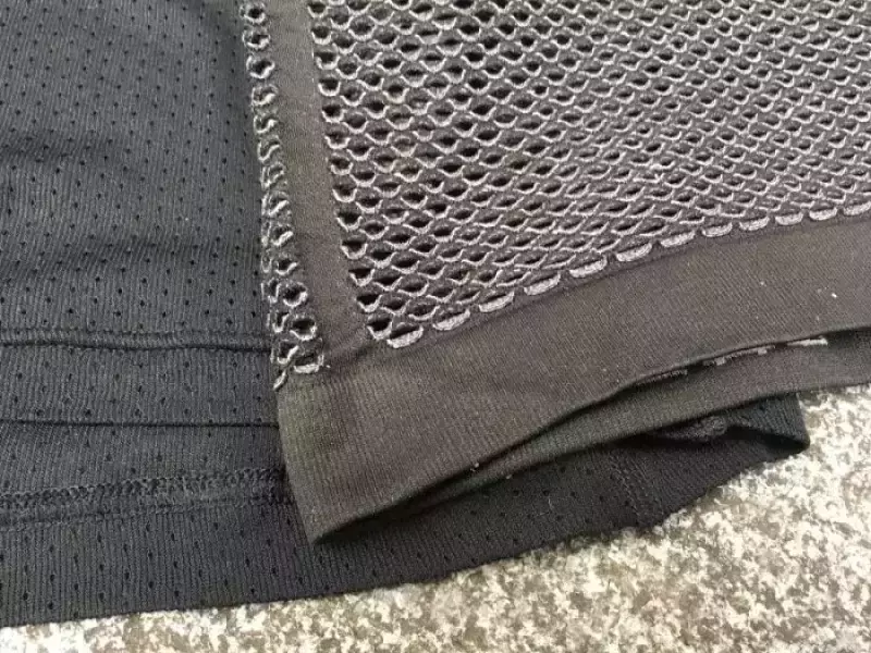 発汗量の多い背中全体と脇部分には、メリノウール50%・ポリエステル47%にポリウレタンを3%加えたメッシュ構造を採用し、優れた通気性と速乾性を実現しています。しかも、透け感が極めて少なく、男女問わず安心して着用できます。