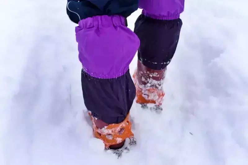 積雪が多い場合、ゲイターが必要です。ゲイターはスパッツとも呼ばれ、ズボンと登山靴の境目に装着することで雪や雨、小石などが登山靴の中に侵入することを防ぎます。登山の前に、訪れる山の積雪状況を確認し、低山であっても積雪量が多ければゲイターを携帯しましょう。