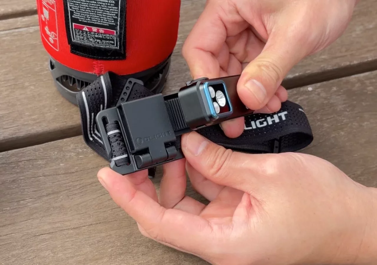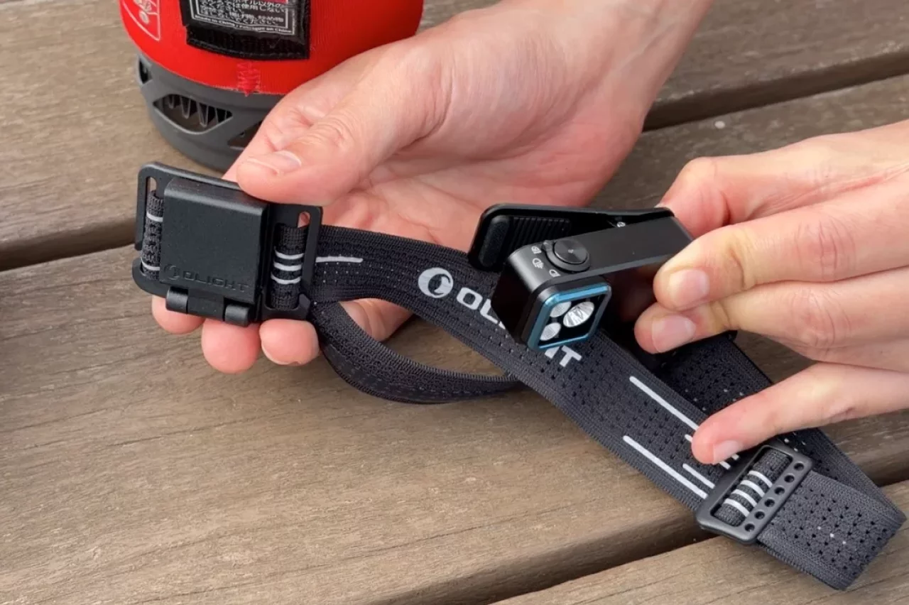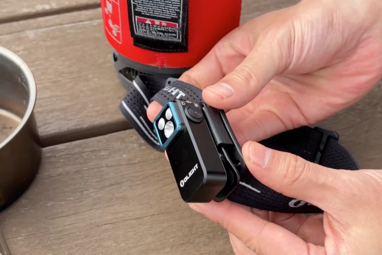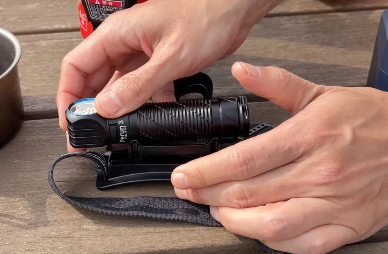 デザインはユニークでクリップが付いているだけでなく、手に持ちやすい形状で、L型ということです。ハンドライトとしてだけでなく、付属のストラップに装着させることでヘッドライトに様変わりします。Oclipとほとんどサイズも重さも一緒ながら、Perun 3 Miniは上部のボタンを押す回数によって光源を切り替えるタイプです。
