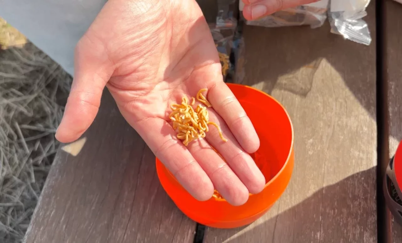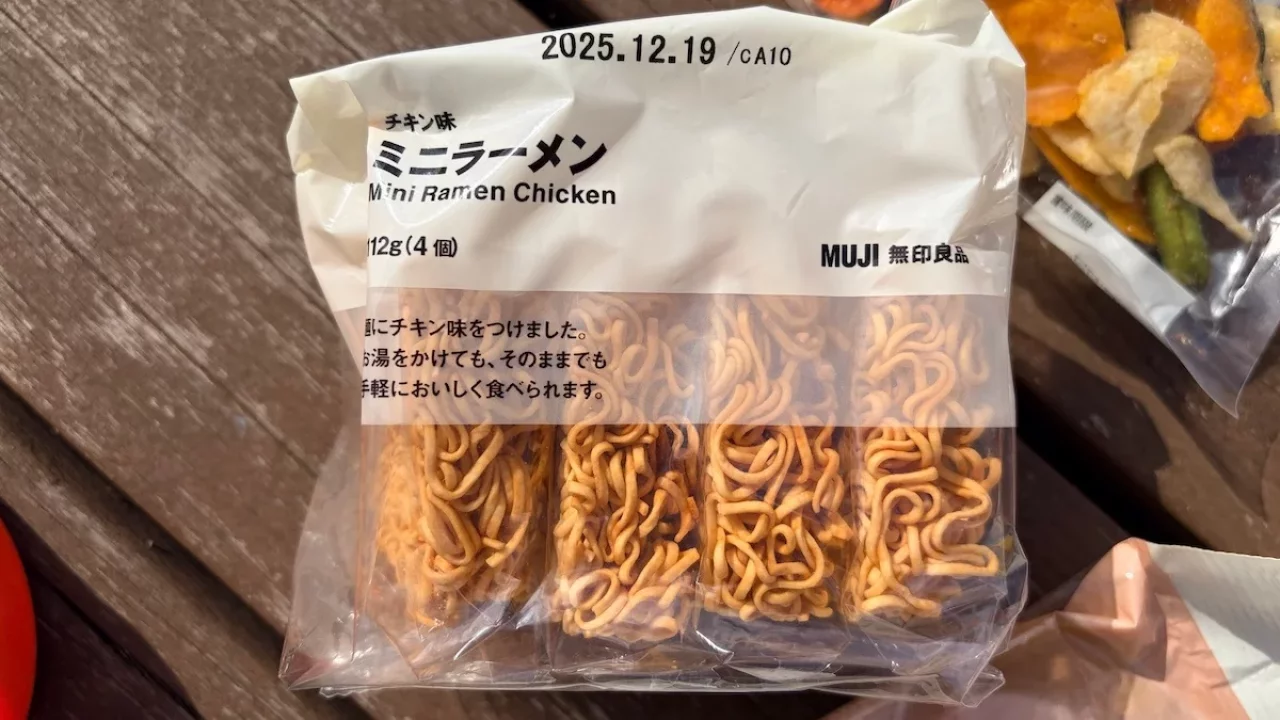 九つ目は「ミニラーメン チキン味」。行動食というより"軽食兼あったか補給食"としておすすめです。コンパクトなカップサイズながら、カリッとした麺をそのままかじればスナック感覚でも楽しめます。