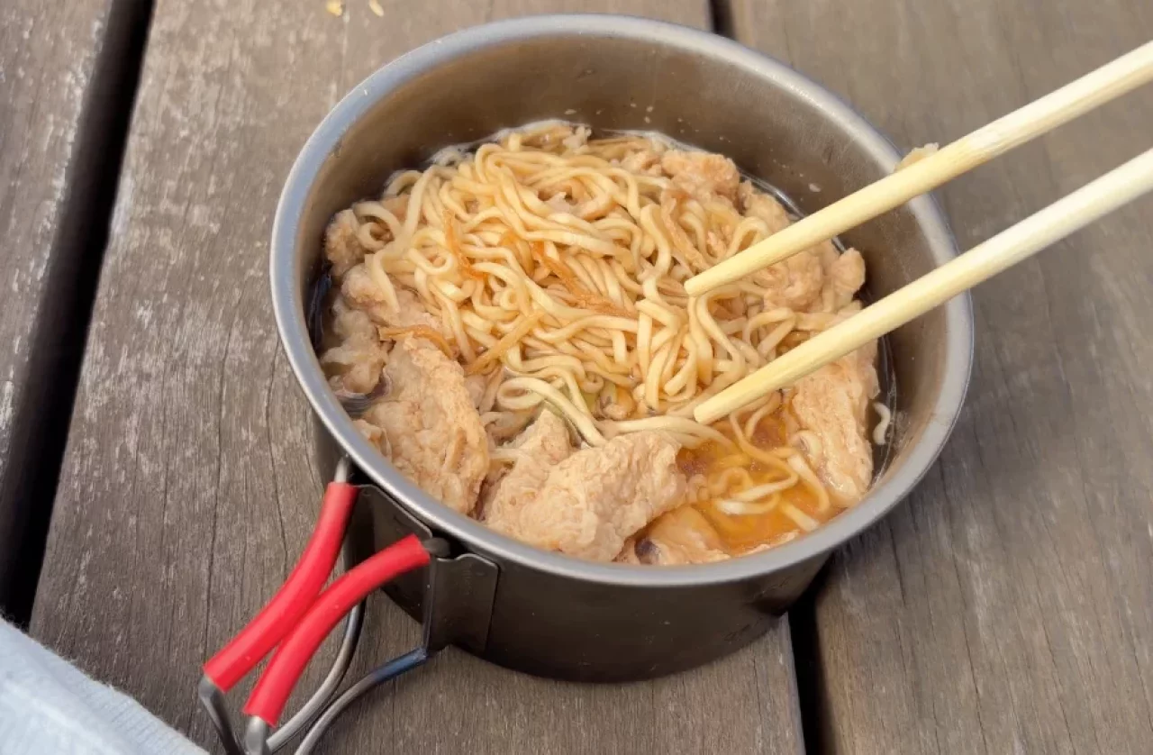 お湯を注げば、ほんの数分で温かいラーメンに早変わり。疲れた体を内側から温め、塩分と炭水化物を同時に補給できます。寒い時期の山行や、下山後の休憩タイムにぴったりです。スープの香りがしっかりしているので、心もホッと落ち着きます。パッケージがしっかりしていて携帯性もよく、軽量なのに満足感が高いのも魅力。お湯を沸かせる環境があれば、簡単に"山のラーメンタイム"が楽しめます。