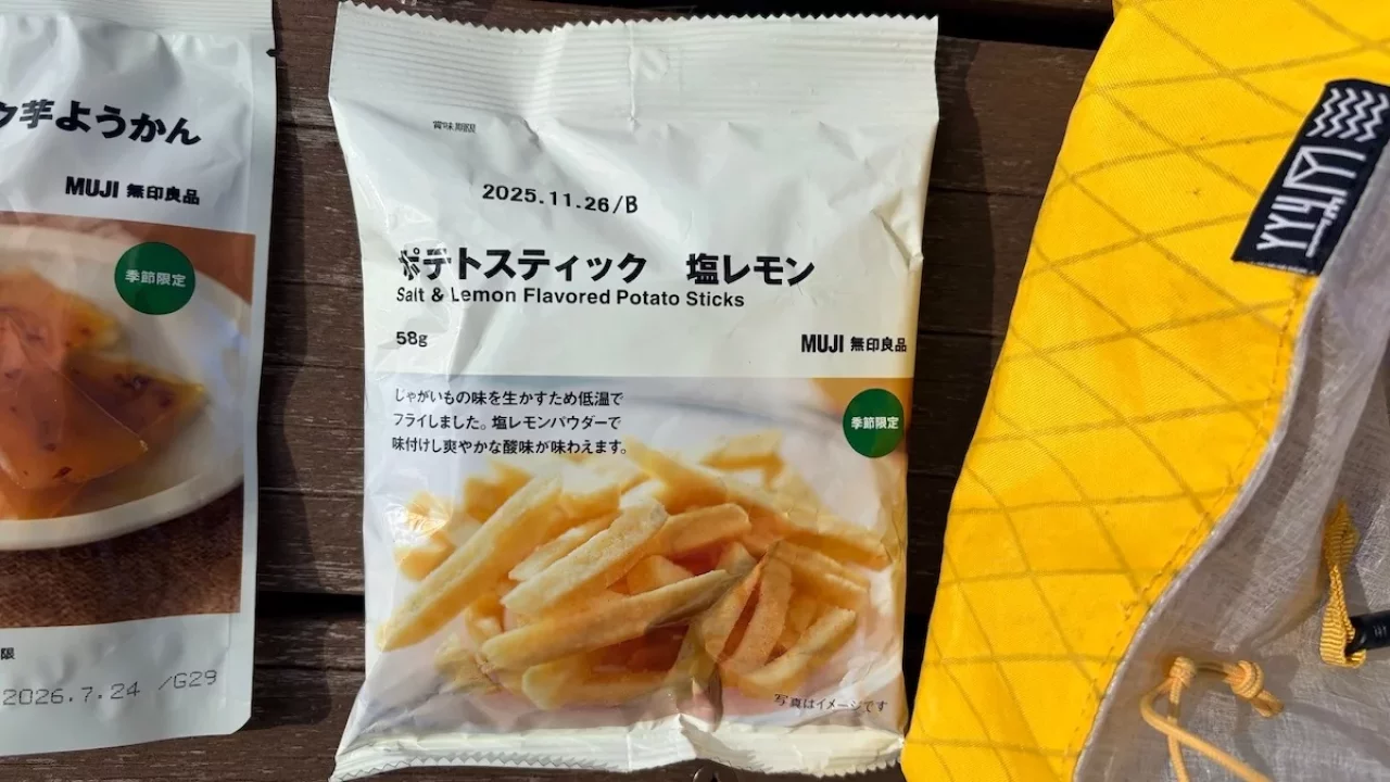 次に紹介するのは「ポテトスティック 塩レモン」。一見スナック菓子のようですが、登山の行動食として非常に優秀なアイテムです。細めのポテトスティックに、さっぱりとしたレモンの風味と塩味が加わり、汗をかいた後の体にちょうどいい味わい。軽くてかさばらず、袋を開けてすぐ食べられる手軽さも魅力です。糖分だけでなく塩分も補給できるので、暑い時期の登山や縦走に特におすすめ。脂っこさが少なく、後味もスッキリしているため、口の中がベタベタしづらく、甘いものばかりの行動食の味変化にもお勧めです。疲労がたまってきたときに食べると、レモンの酸味が気分をリセットしてくれます。行動中の"しょっぱい系"として、甘味系の行動食と組み合わせておくとバランスが良いです。仲間とシェアしながら食べても楽しいおやつです。