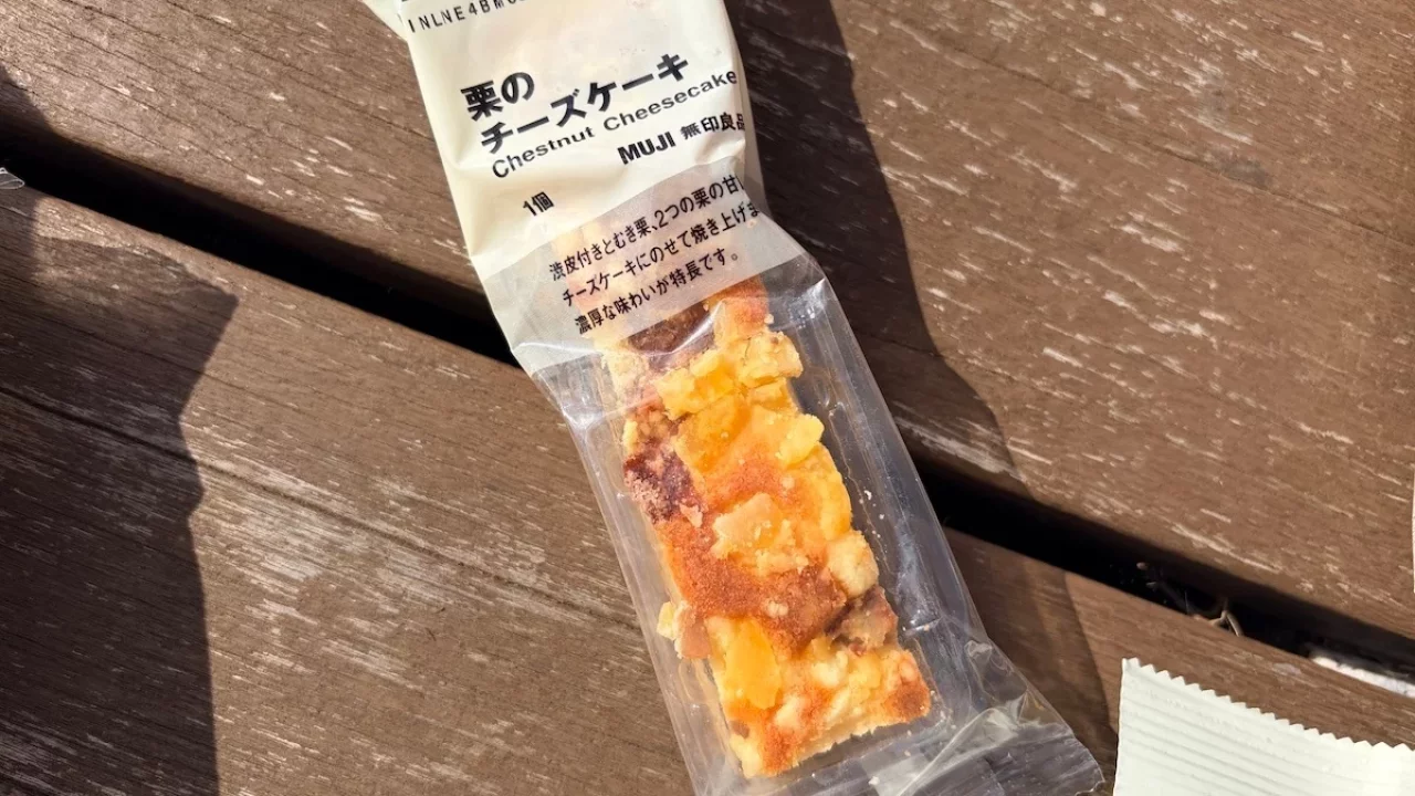 次に紹介するのは「栗のチーズケーキ」。登山中に少し贅沢な甘味を取りたいときにおすすめの一品です。濃厚なチーズのコクと、栗のやさしい甘みが重なり、しっとりとした食感が口の中に広がります。糖質・脂質ともにしっかり含まれているため、エネルギー補給にも最適。登りの途中で体が重く感じたときや、休憩中に気分をリセットしたいときにぴったりです。形が崩れにくく、個包装でザックの中でも安心。冷えた状態でも風味が損なわれないので、寒い季節の山行にも向いています。山頂で温かいコーヒーと一緒に食べれば、まるでカフェのスイーツのような満足感。行動食というより"心の栄養補給"になるご褒美スイーツです。疲労回復と気持ちの切り替え、どちらにも効くチーズケーキです。